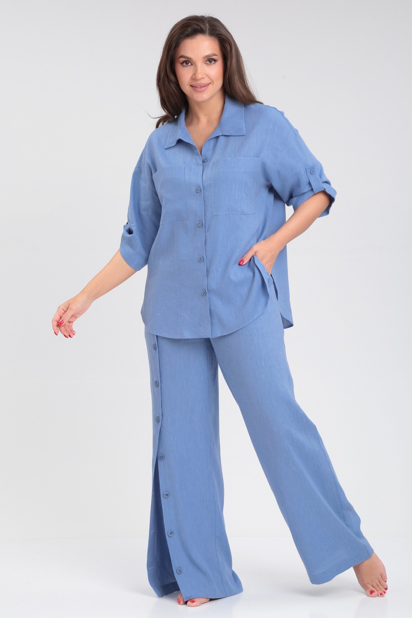 Оригинальные брюки Ma Сhérie из натуральной льняной ткани. Пояс притачной на резинке. По передней половинке брюк расположена планка с центральной застежкой на петли и пуговицы. Брюки будут идеально смотреться с нашей рубашкой 1084 (на фото), также вместе с рубашкой можно купить костюмом 3055. Брюки составят незаменимую часть вашего весенне-летнего гардероба.
