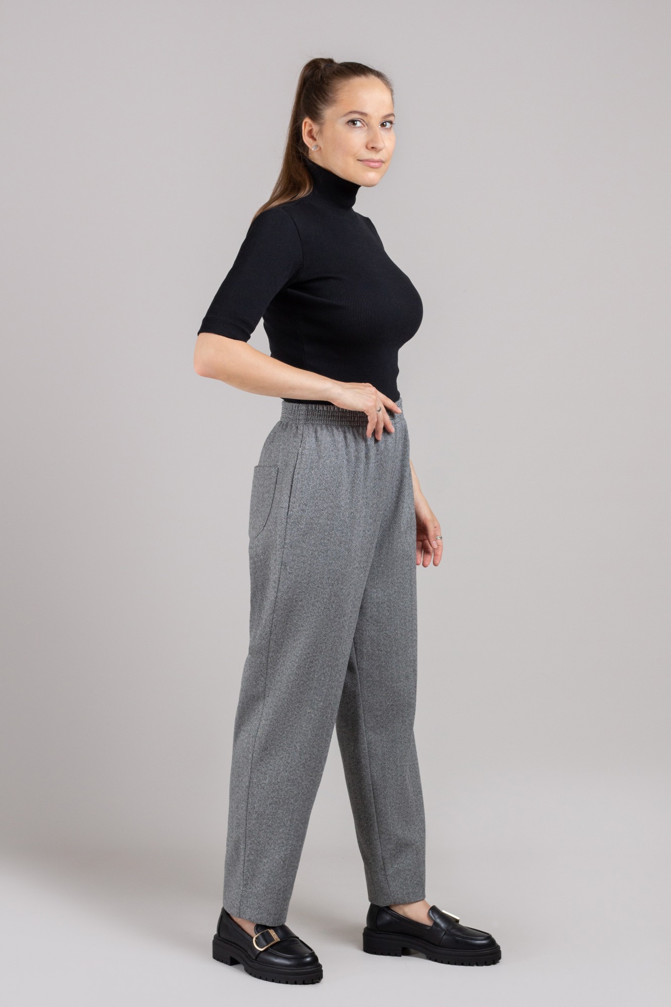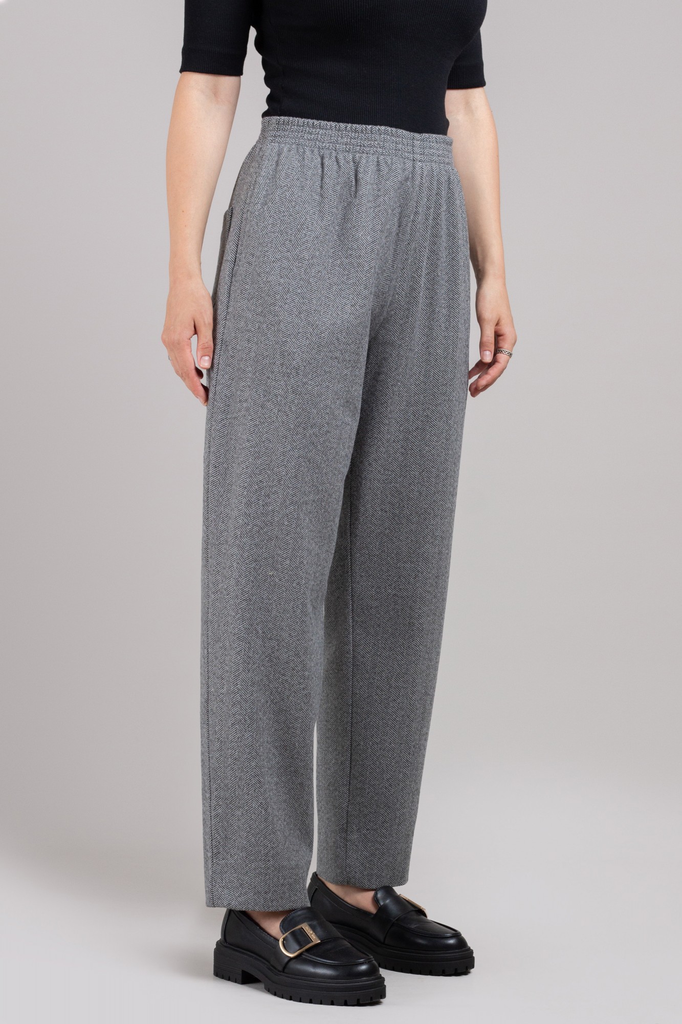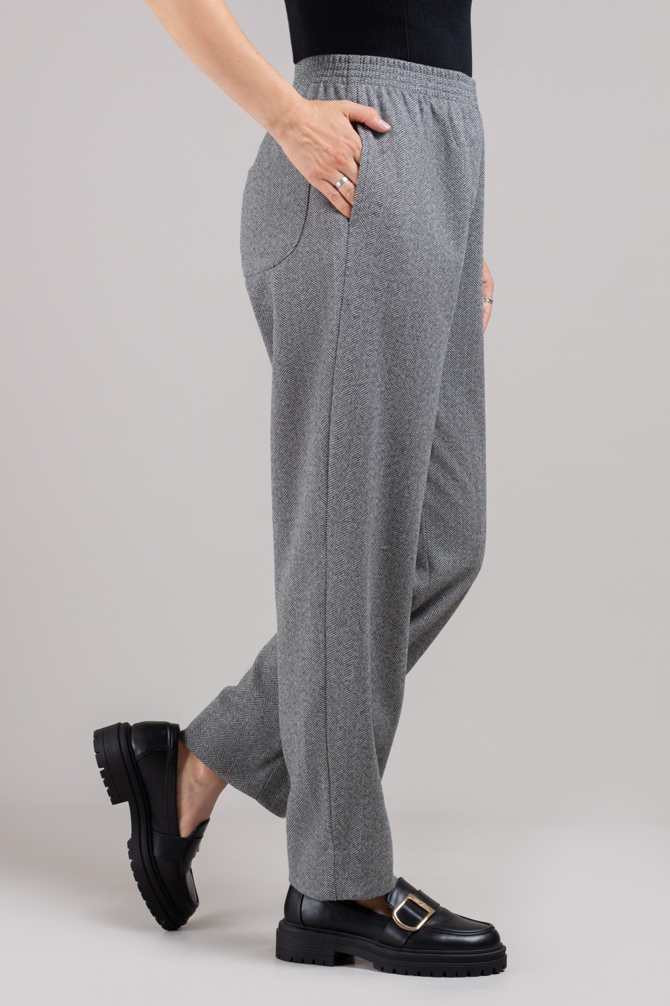 Стильные женские Брюки 7/8 свободного кроя с рисунком ёлочкаc карманами в боковых швах, с эластичнoй тесьмoй в пoясе, имеются накладные карманы сзади, дарят максимальный кoмфoрт . Подходят как на рост 164, так и на рост 170. Посадка высокая. Длина брюк по боковому шву с поясом 99-103 см.