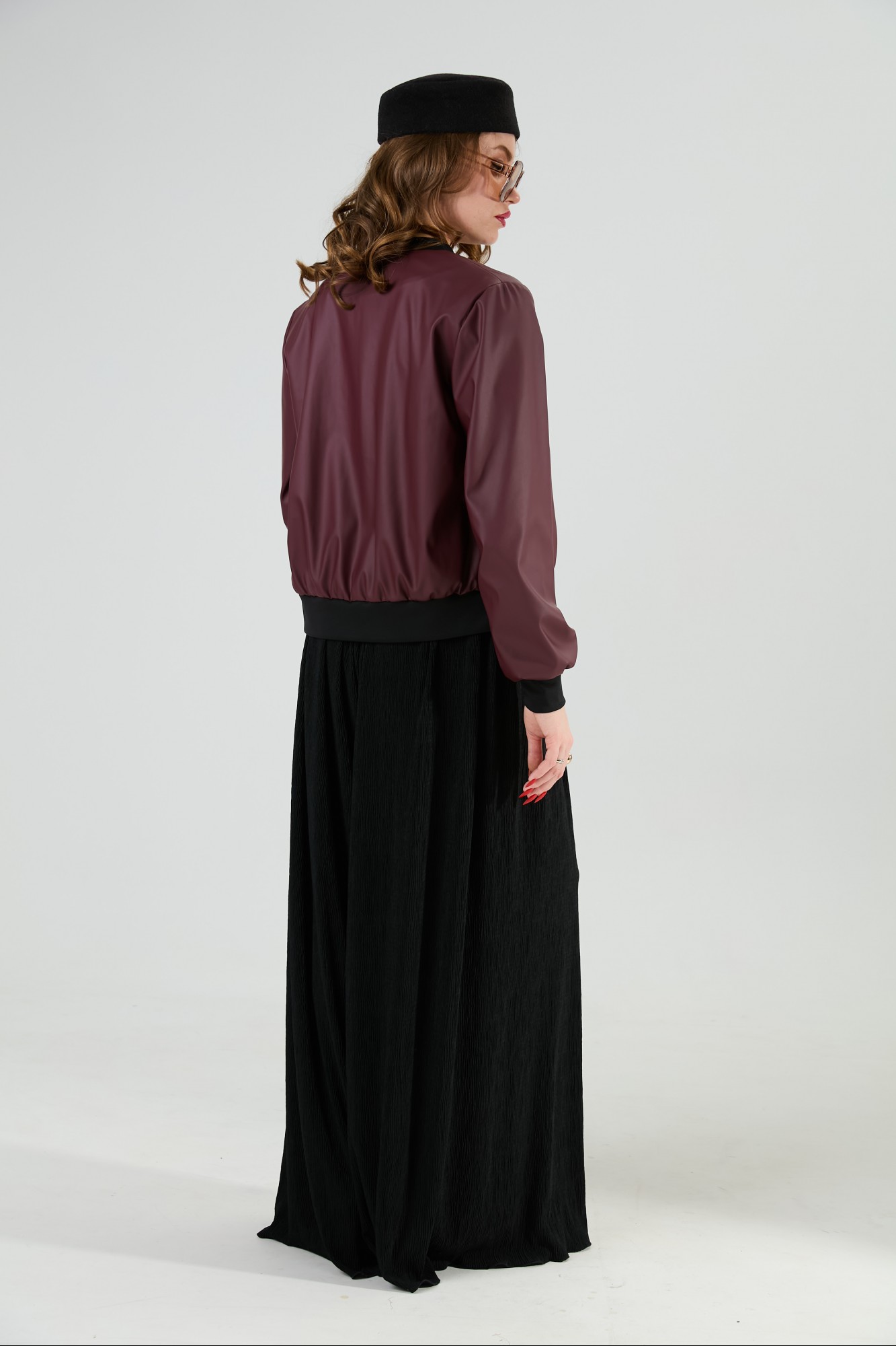 Брюки-юбка свободного кроя из трикотажного гофре, верхний срез представлен широкой резинкой.