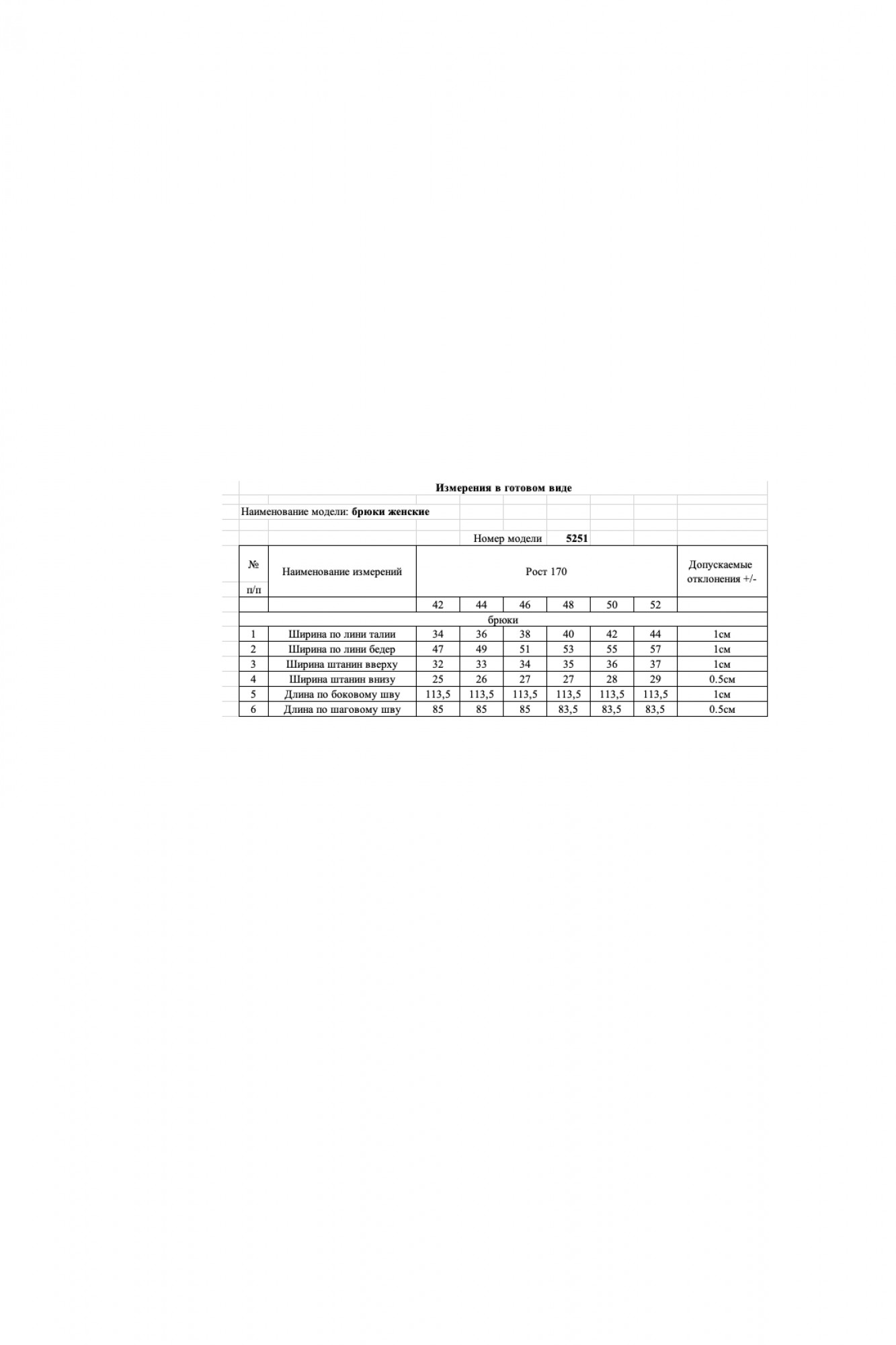 Таблица размеров