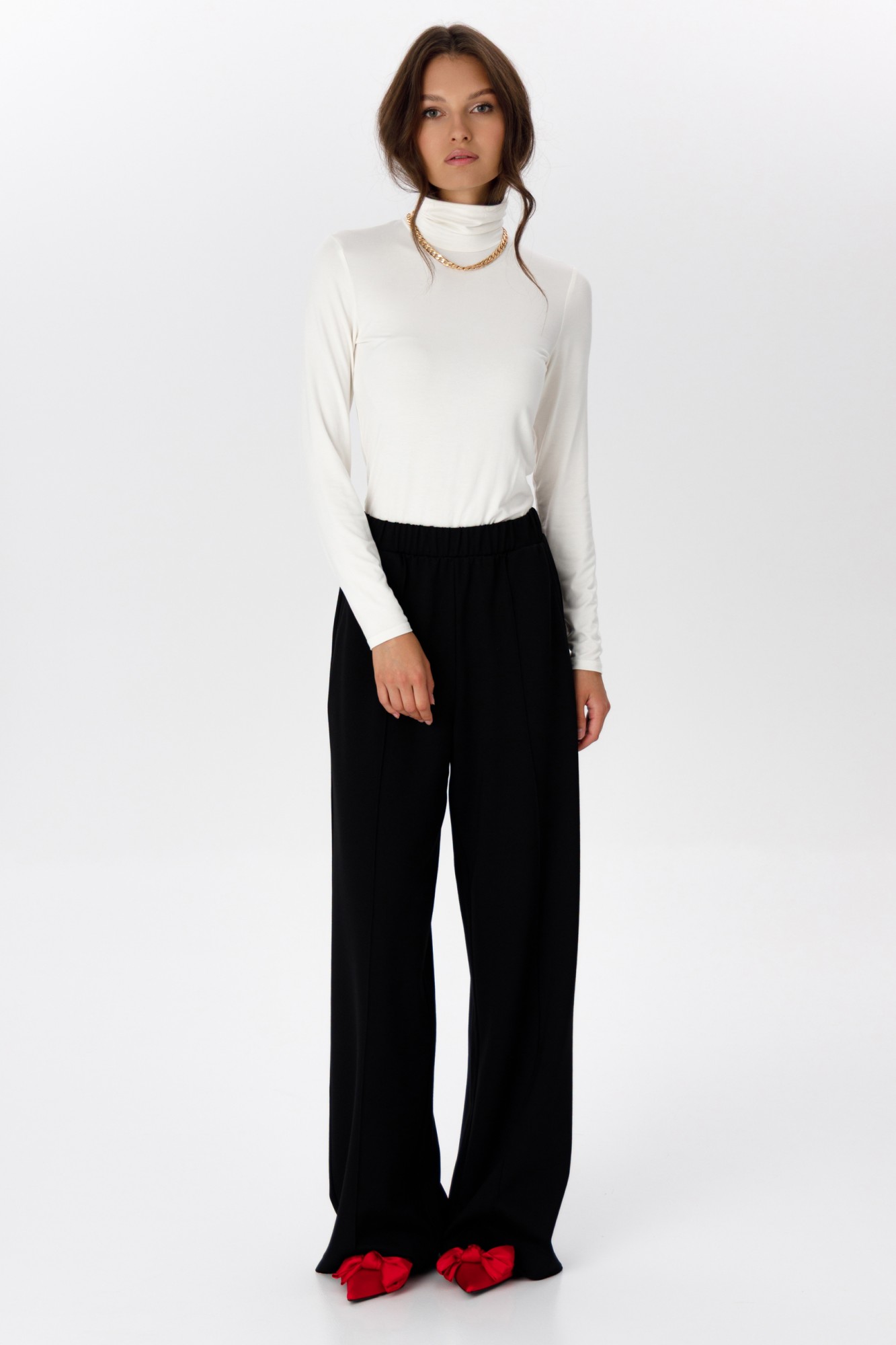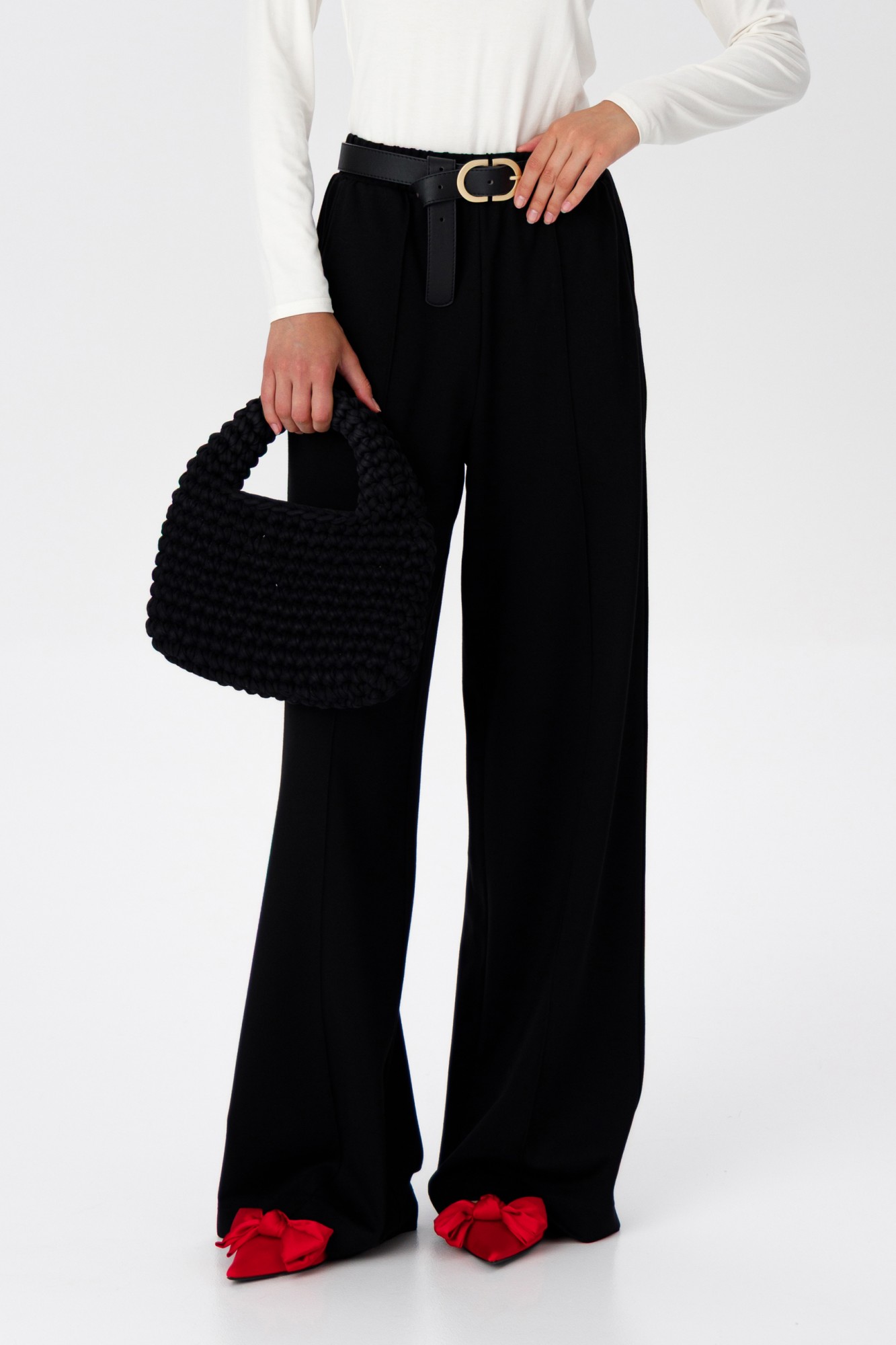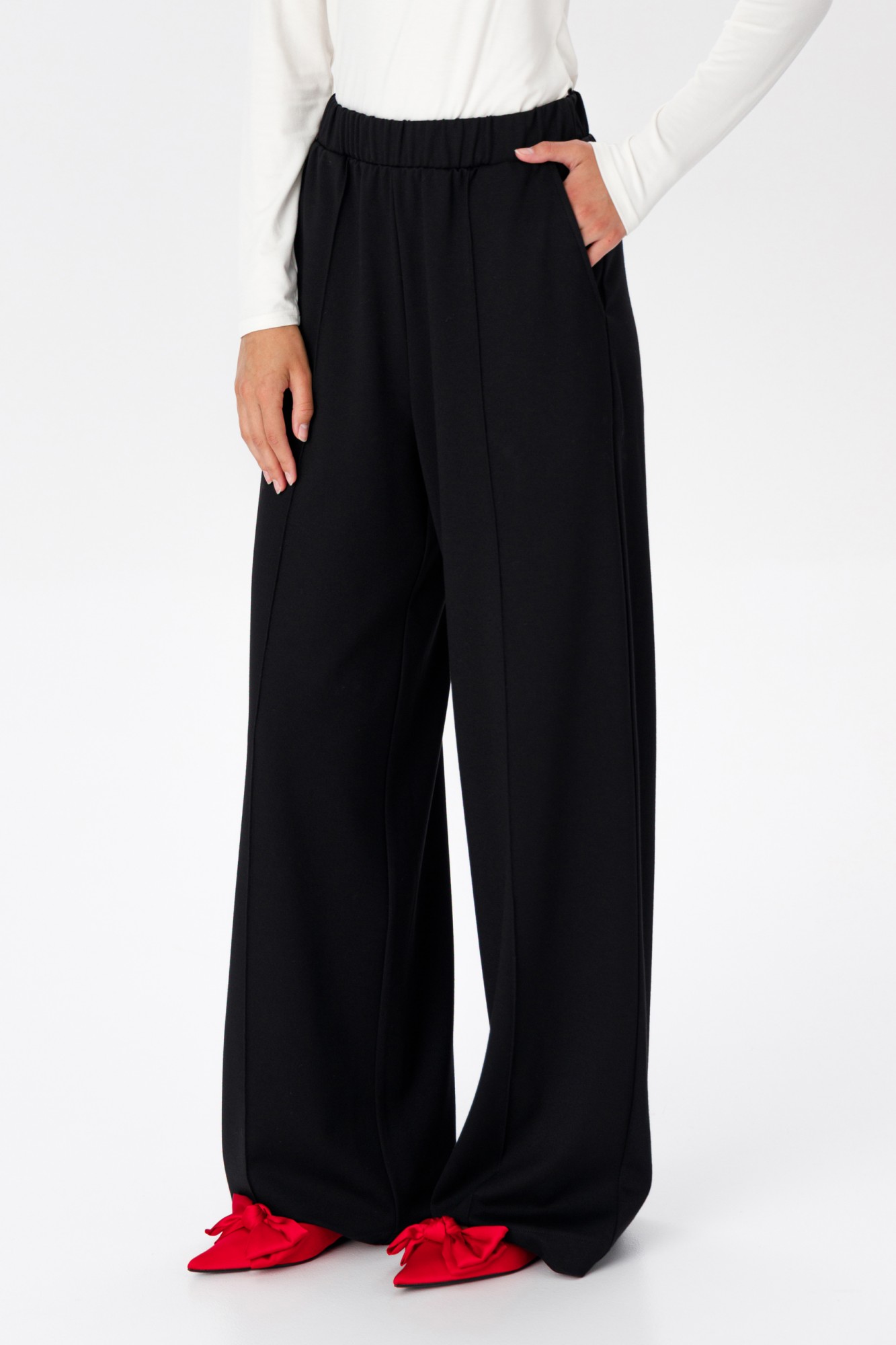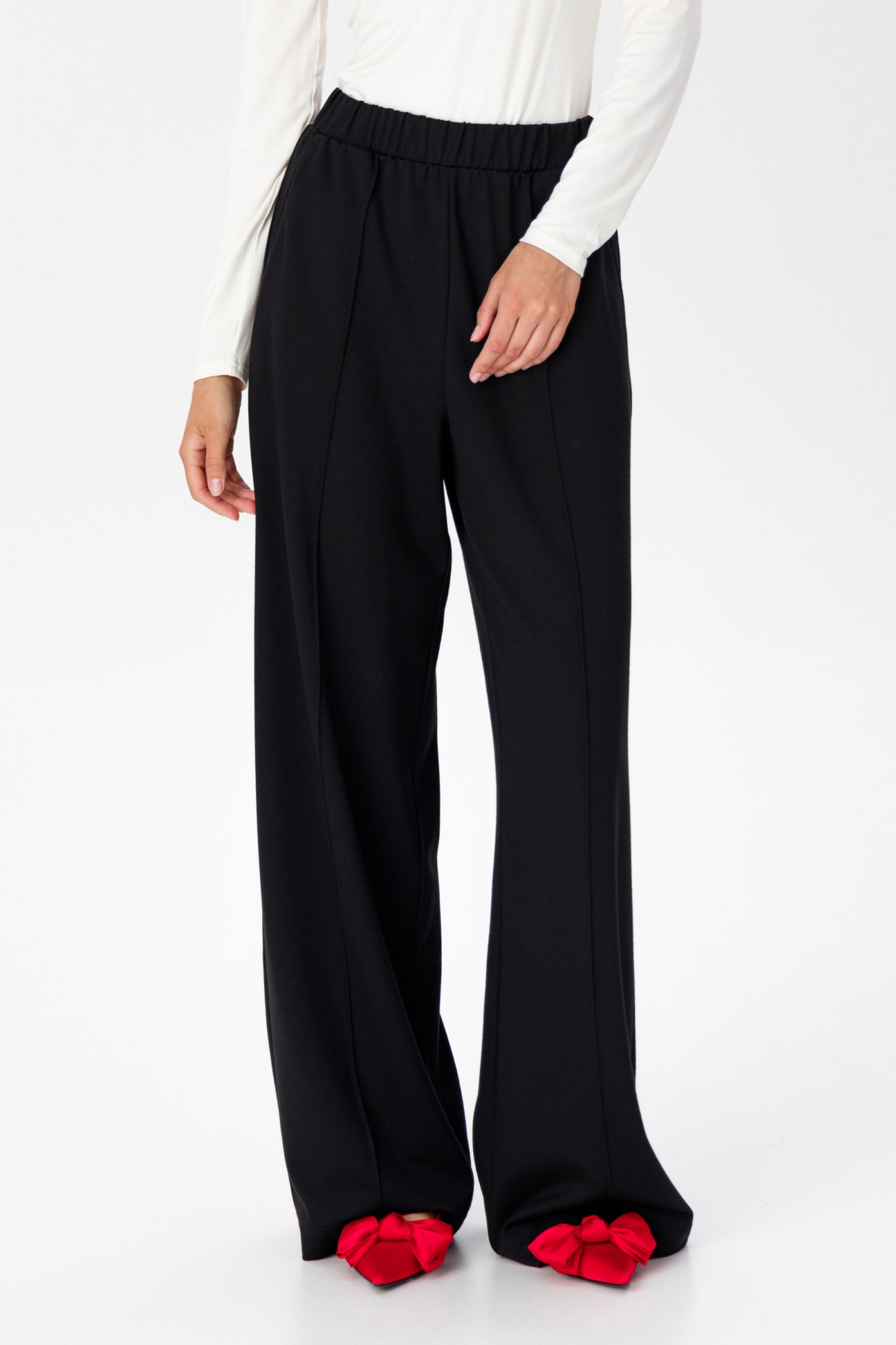 Детали: Гладкая ткань без лишних декоративных элементов, что делает брюки универсальными для любого случая.