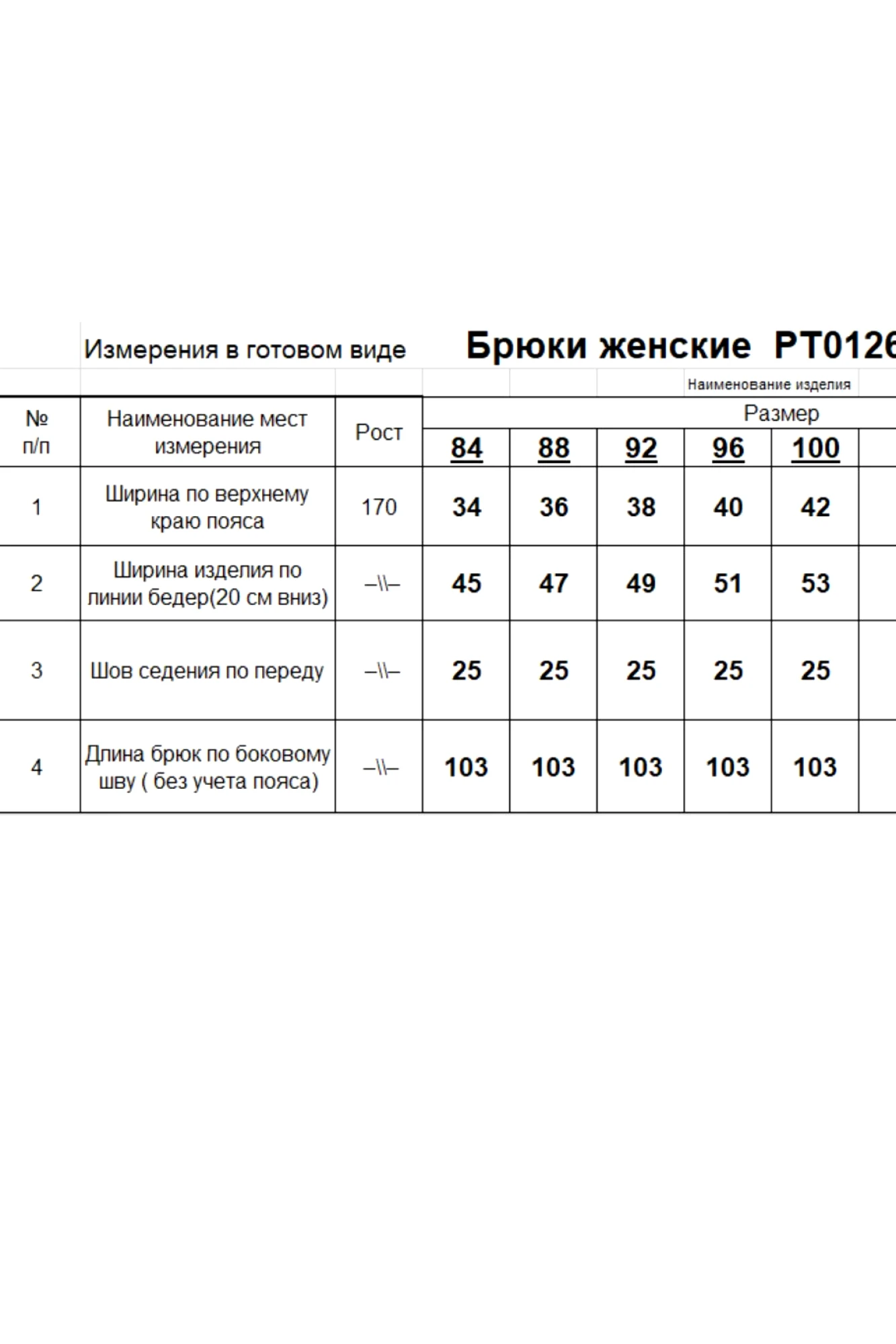 Таблица размеров