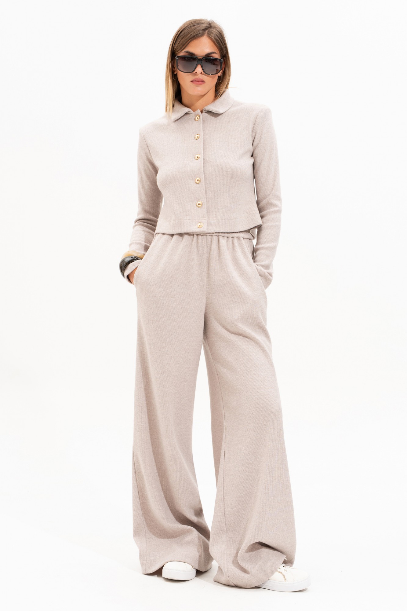 Брюки широкие с поясом на резинке. Изделие выполнено из мягкого трикотажного полотна, которое сочетает в себе благородный внешний вид и приятную текстуру.