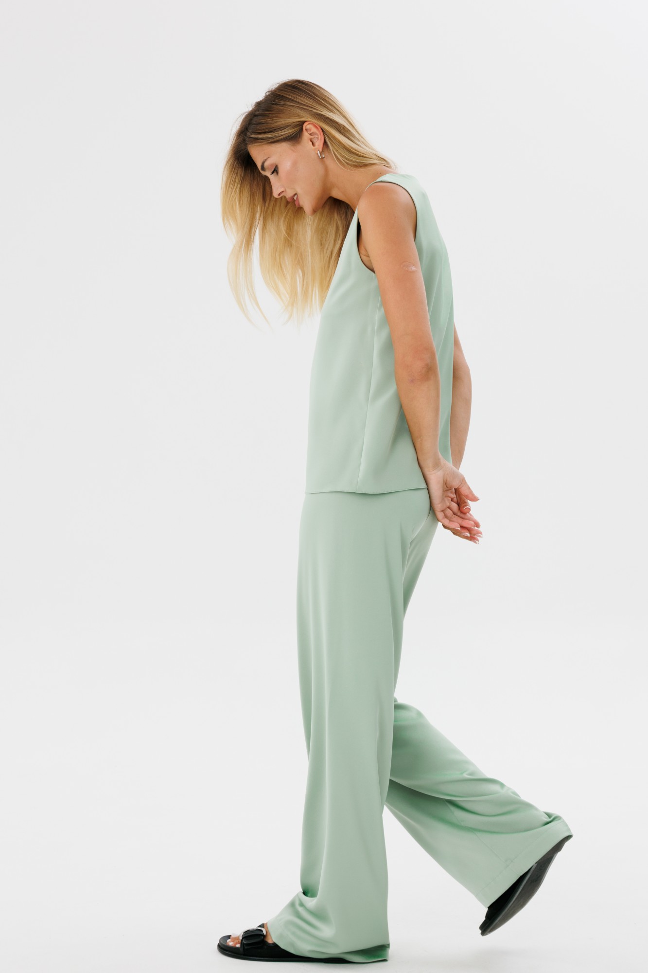 Прямые брюки из струящегося атласа бесспорно станут вашим фаворитом в гардеробе, талия высокая, брюки на резинке. Вещи из атласа отлично вписываются в любой стиль и подходят для разных поводов, удобная посадка, не сковывают движения, сочетайте с топом из нашей коллекции арт.2298.