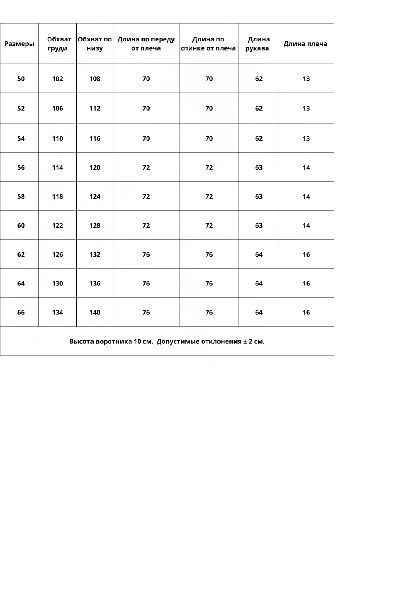 Таблица размеров