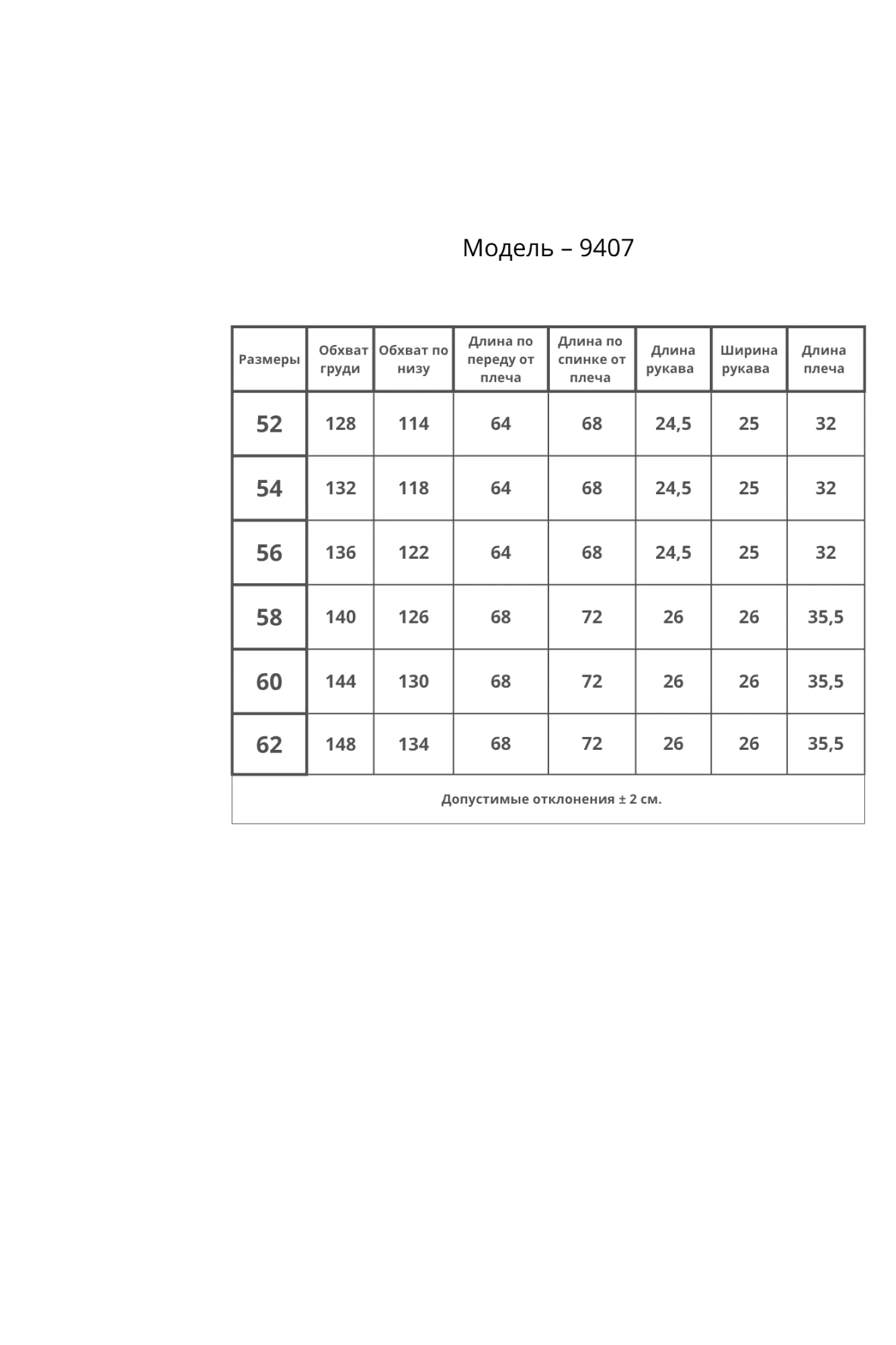Таблица размеров