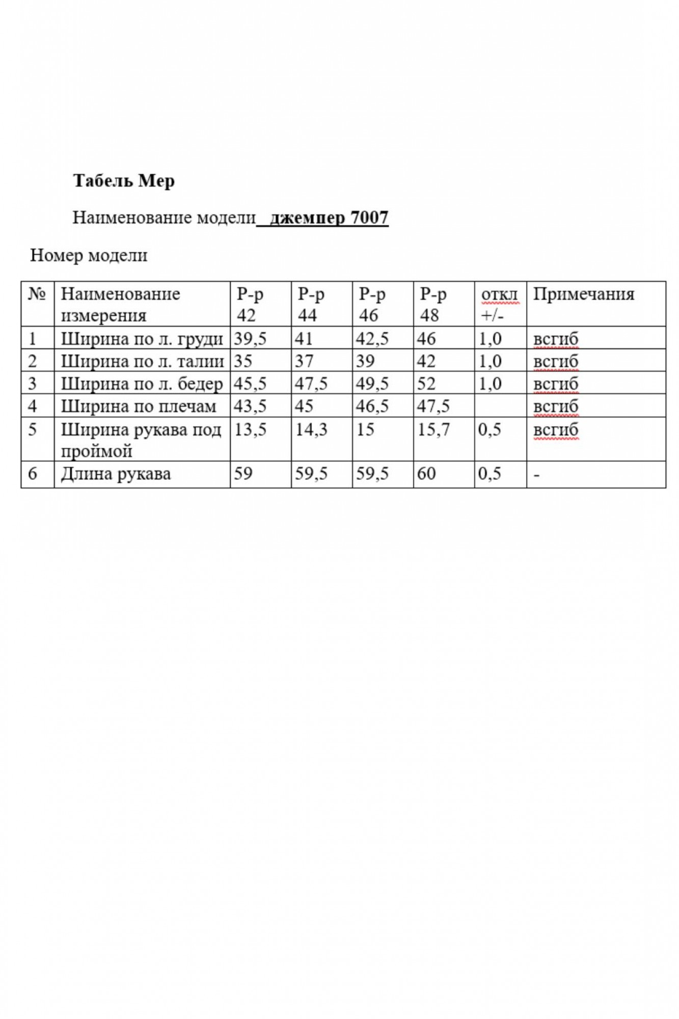 Таблица размеров