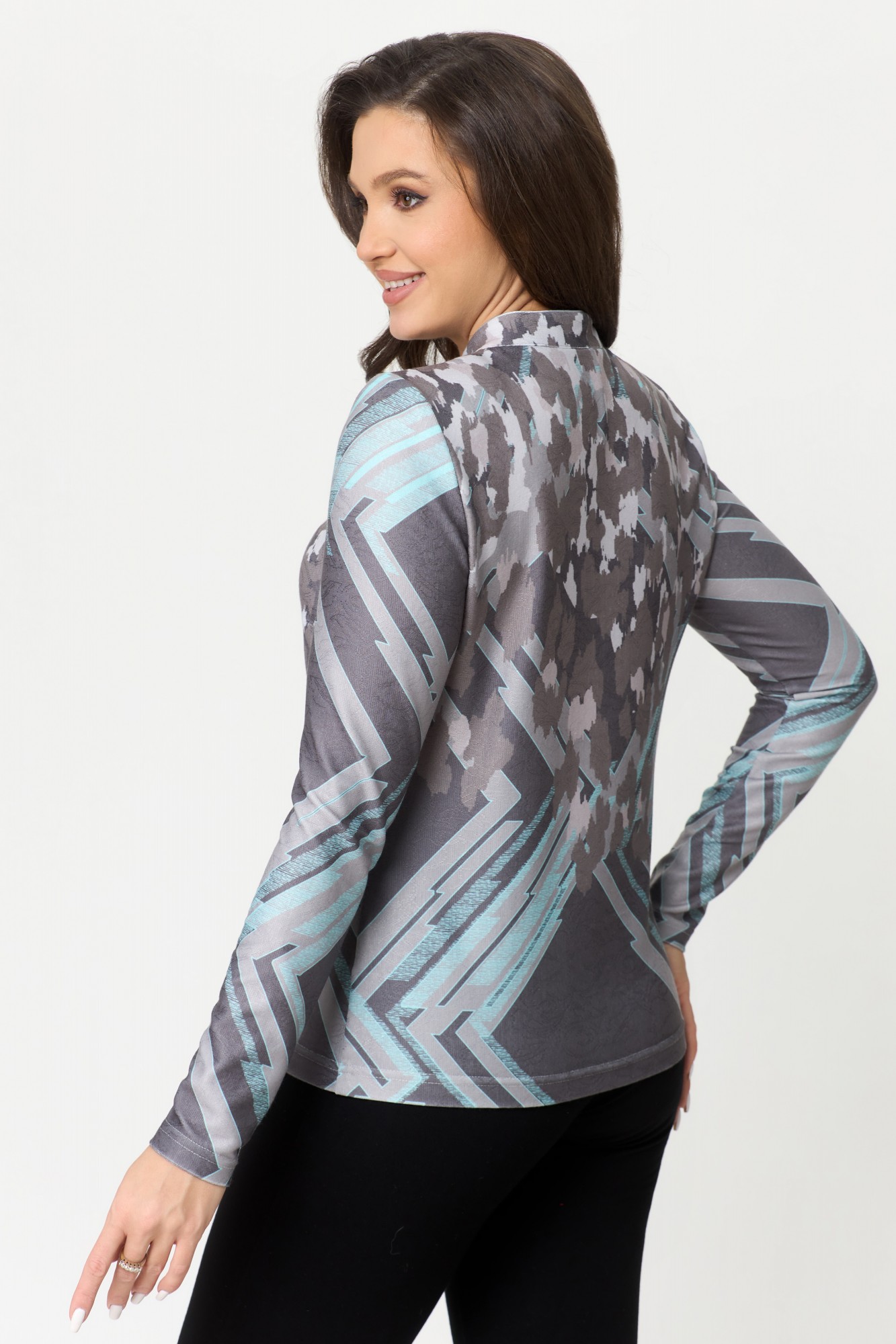Джемпер (кофта) Дали 4068 серая с бирюзой с ID товара 393610
