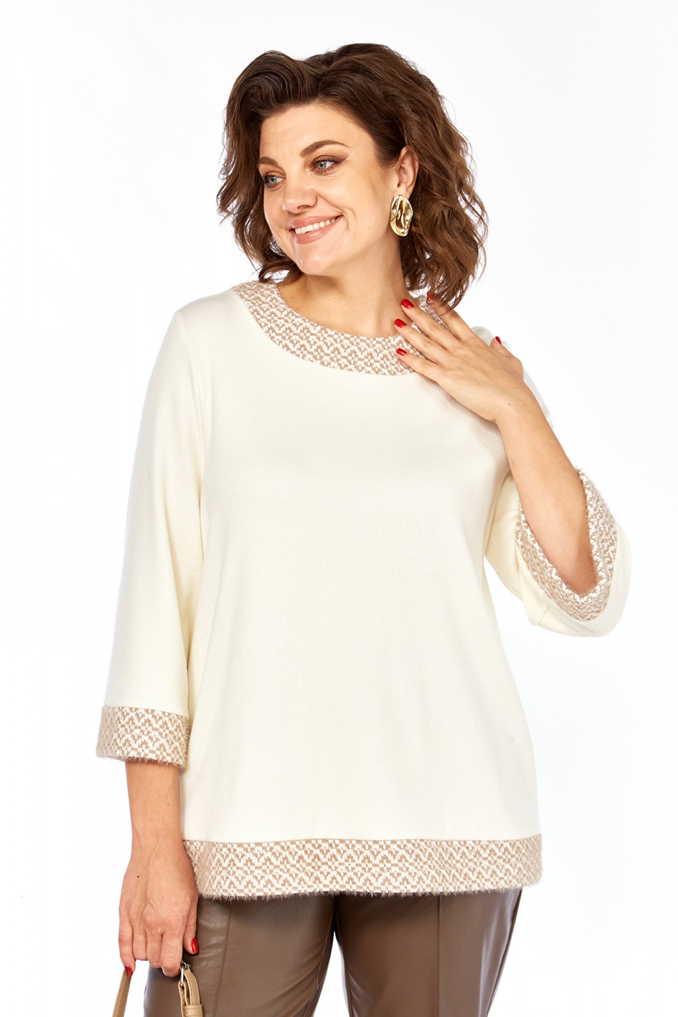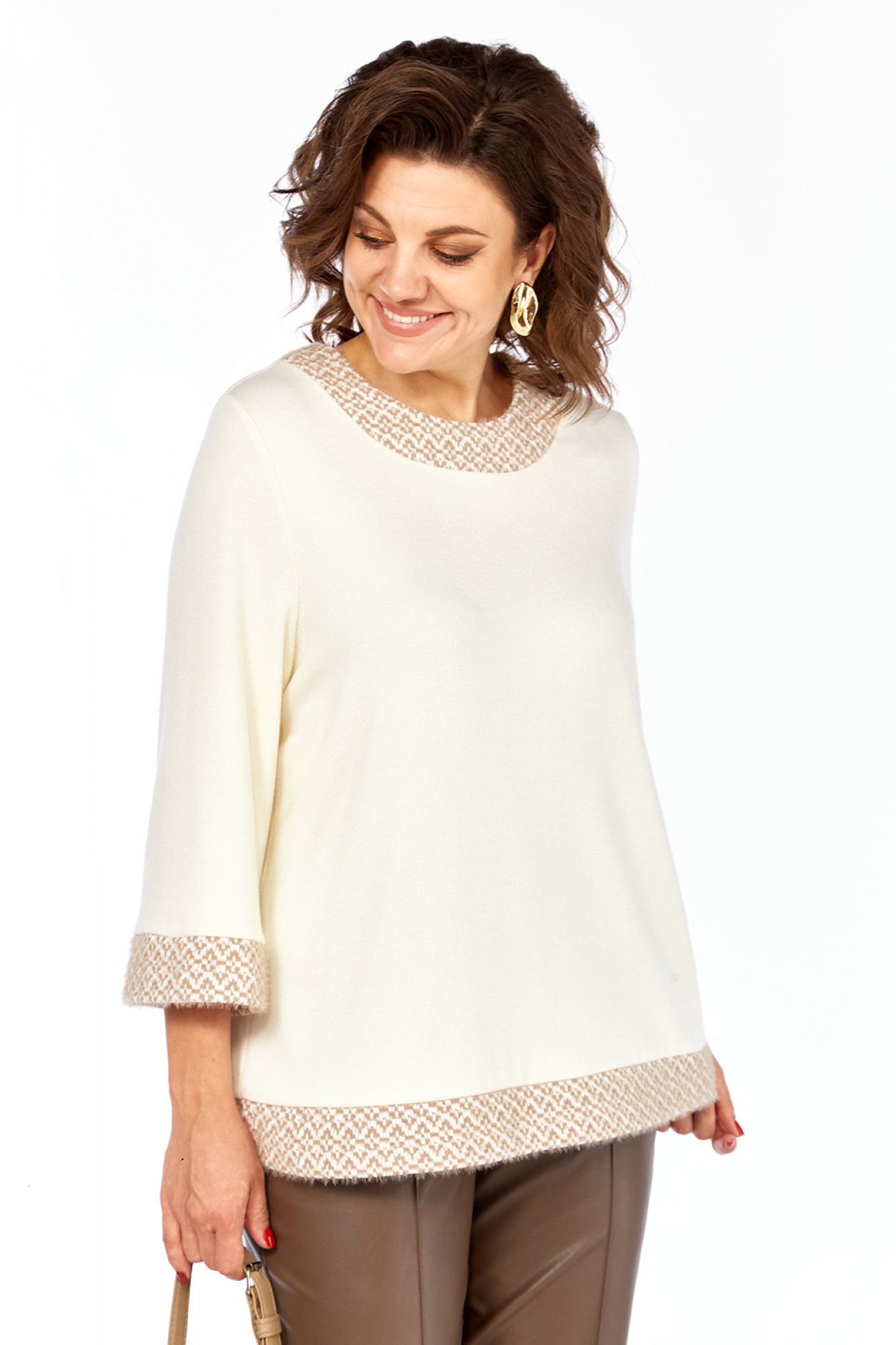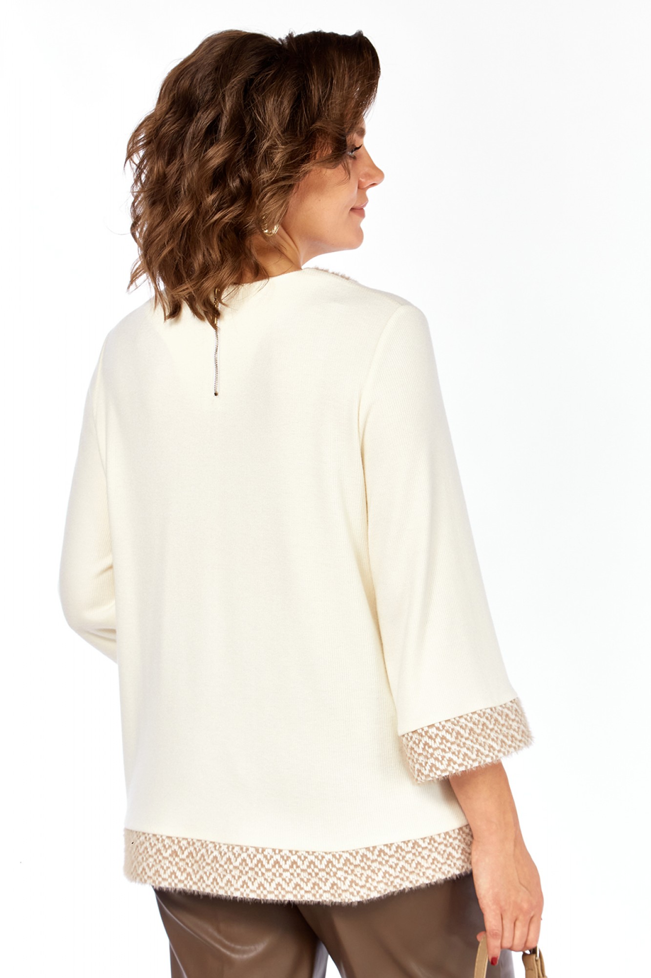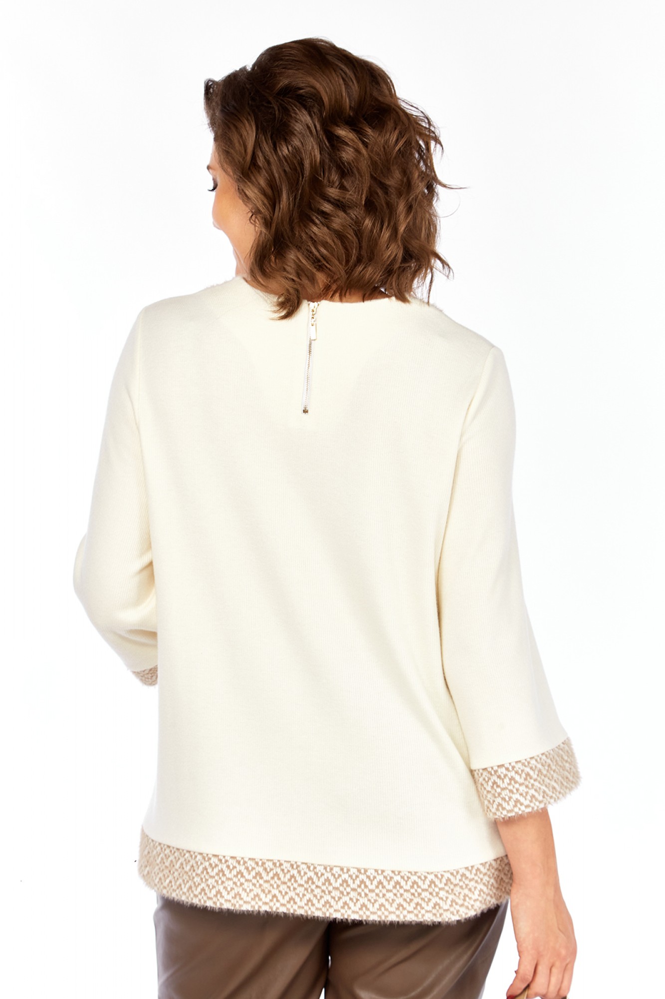 Джемпер женский прямого силуэта, выполнен из трикотажного полотна. Горловина округлой формы, по переду обработана вставка из отделочной ткани. Спинка с застежкой на молнию. Рукава втачные, по низу с притачной манжетой из отделочной ткани. Изделие обработано планкой.