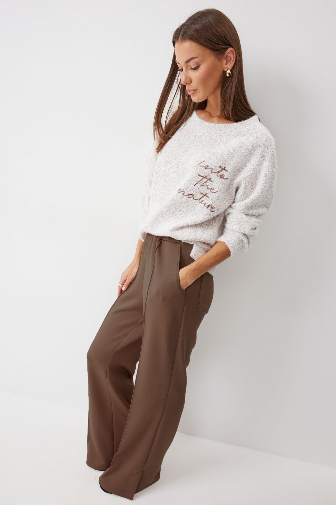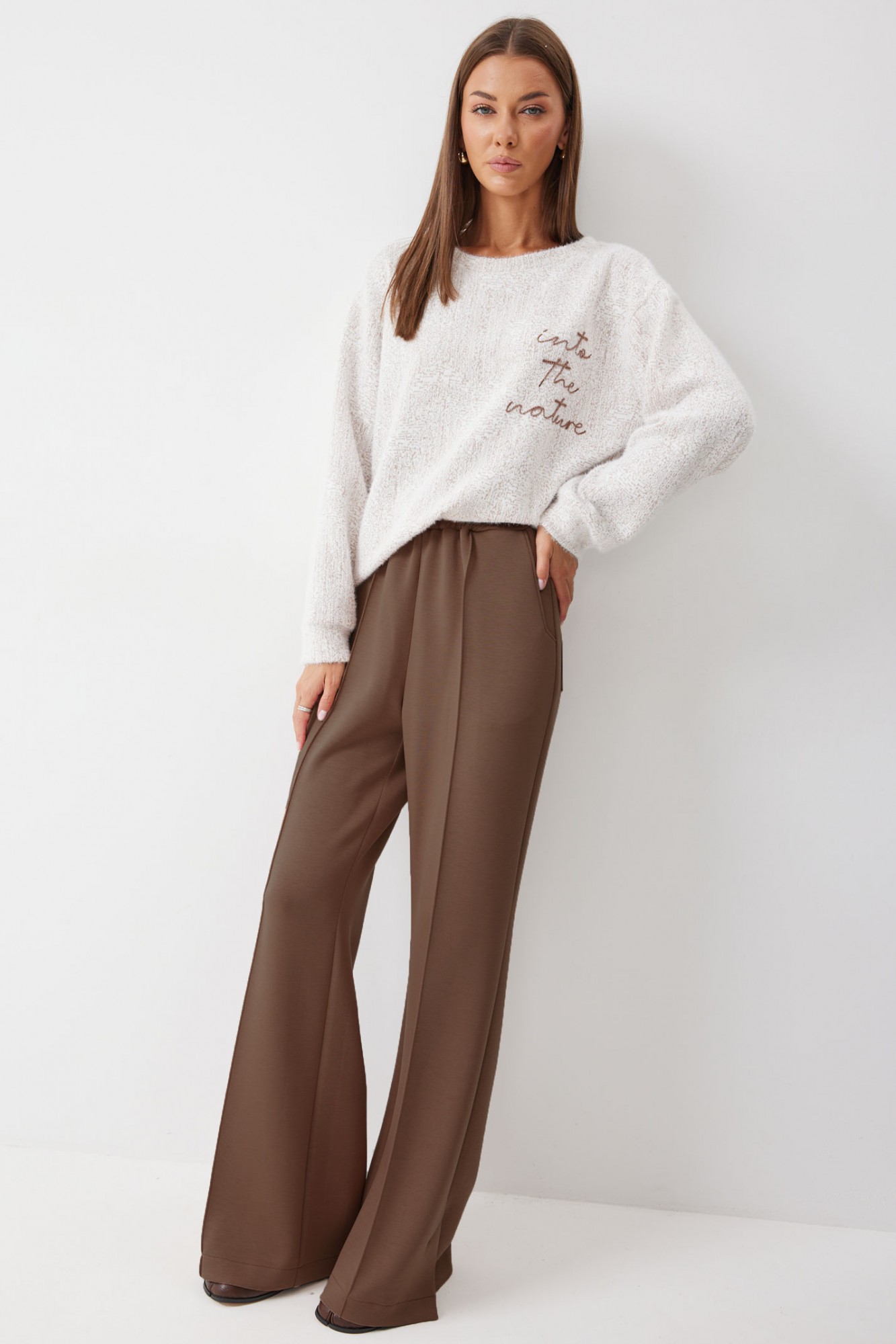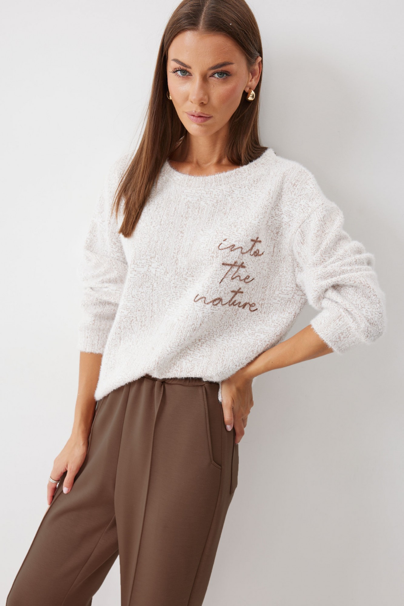 Джемпер прямого силуэта из комфортного трикотажного полотна. Горловина округлая. Рукав со спущенной линией плеча, по низу манжета. По низу джемпера в боковых швах разрезы. По переду дизайнерская вышивка. Обращаем ваше внимание, что фурнитура может отличаться от фото.
