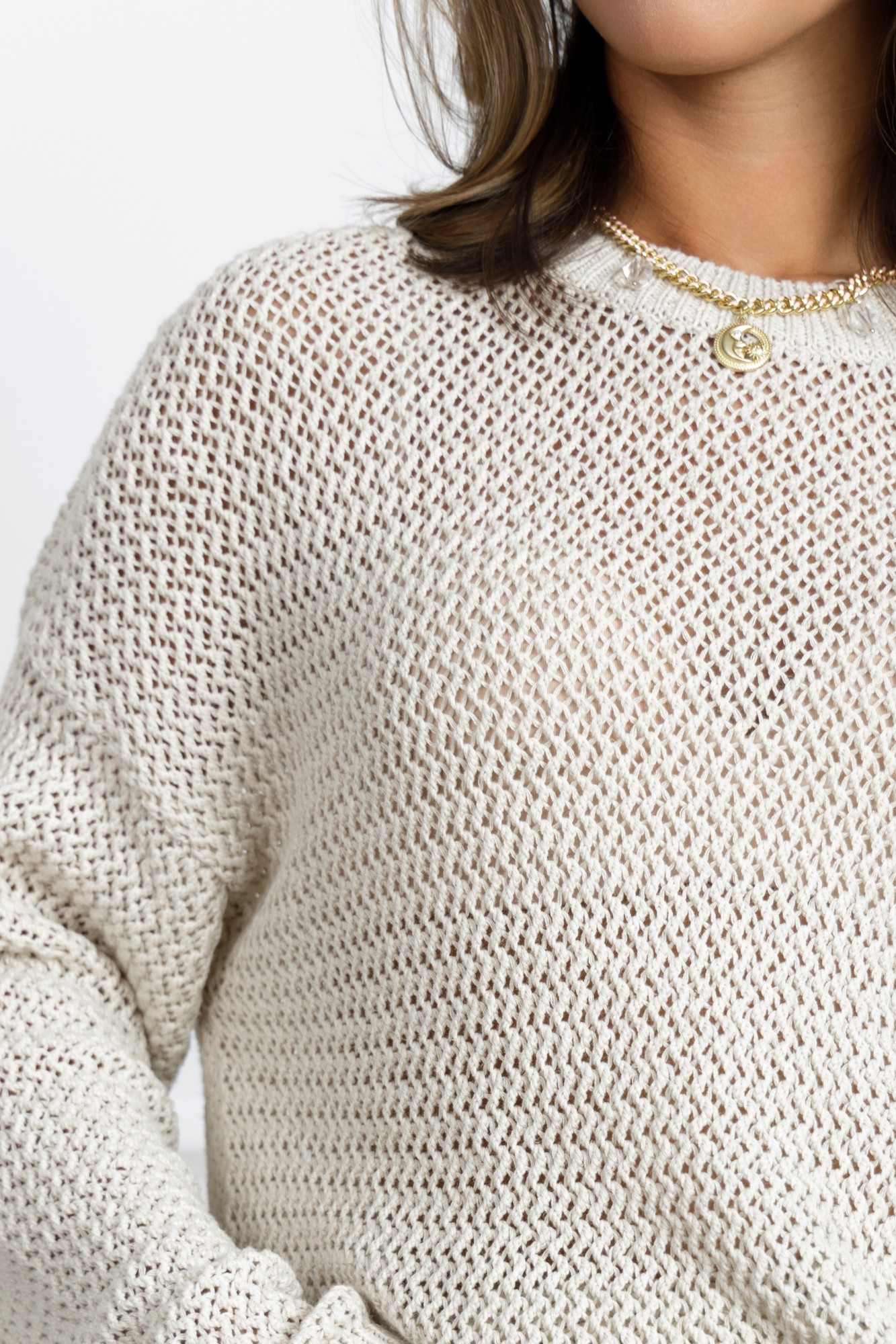 Классический базовый джемпер с длинным рукавом и спущенным плечом. Выполнен из высококачественной, мягкой и приятной к телу пряжи с добавлением льна переплетением сетка. Джемпер представлен в натуральном цвете. Джемпер изготовлен специально для любителей свободных и легких вещей. Является базовой частью гардероба. Отлично сочетается с джинсами, брюками, юбкой и с любым типом обуви. Прекрасен на любой сезон, для работы, офиса, торжественного случая и повседневной носки. Благодаря своему составу изделие сохранит свою форму спустя множество стирок и прослужит вам не один сезон. Важная информация! Фото товара сделано при искусственном освещении студии. При естественном освещении цвета могут иметь другие оттенки. Сушите изделие горизонтально, разложив на полу или горизонтальной поверхности.