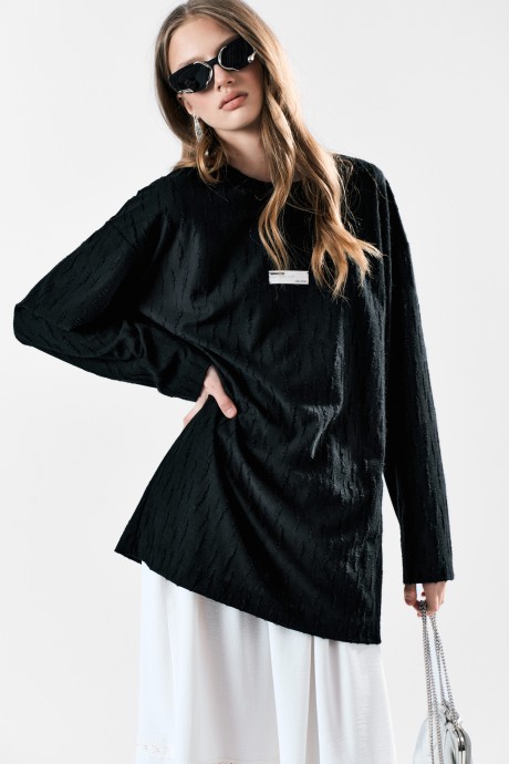 Лонгслив свободного силуэта из фактурного материала. Декоративная нашивка по центру груди. Мягкий приятный к телу материал.