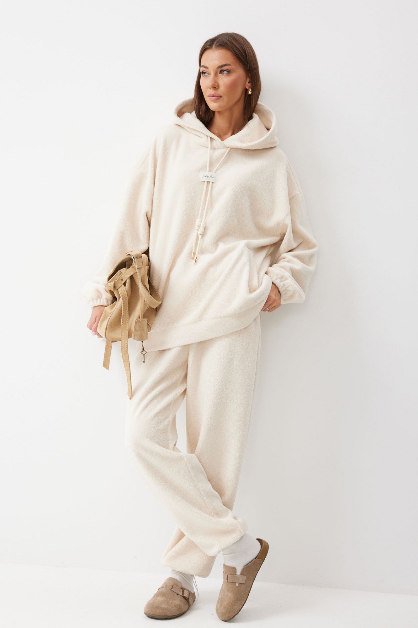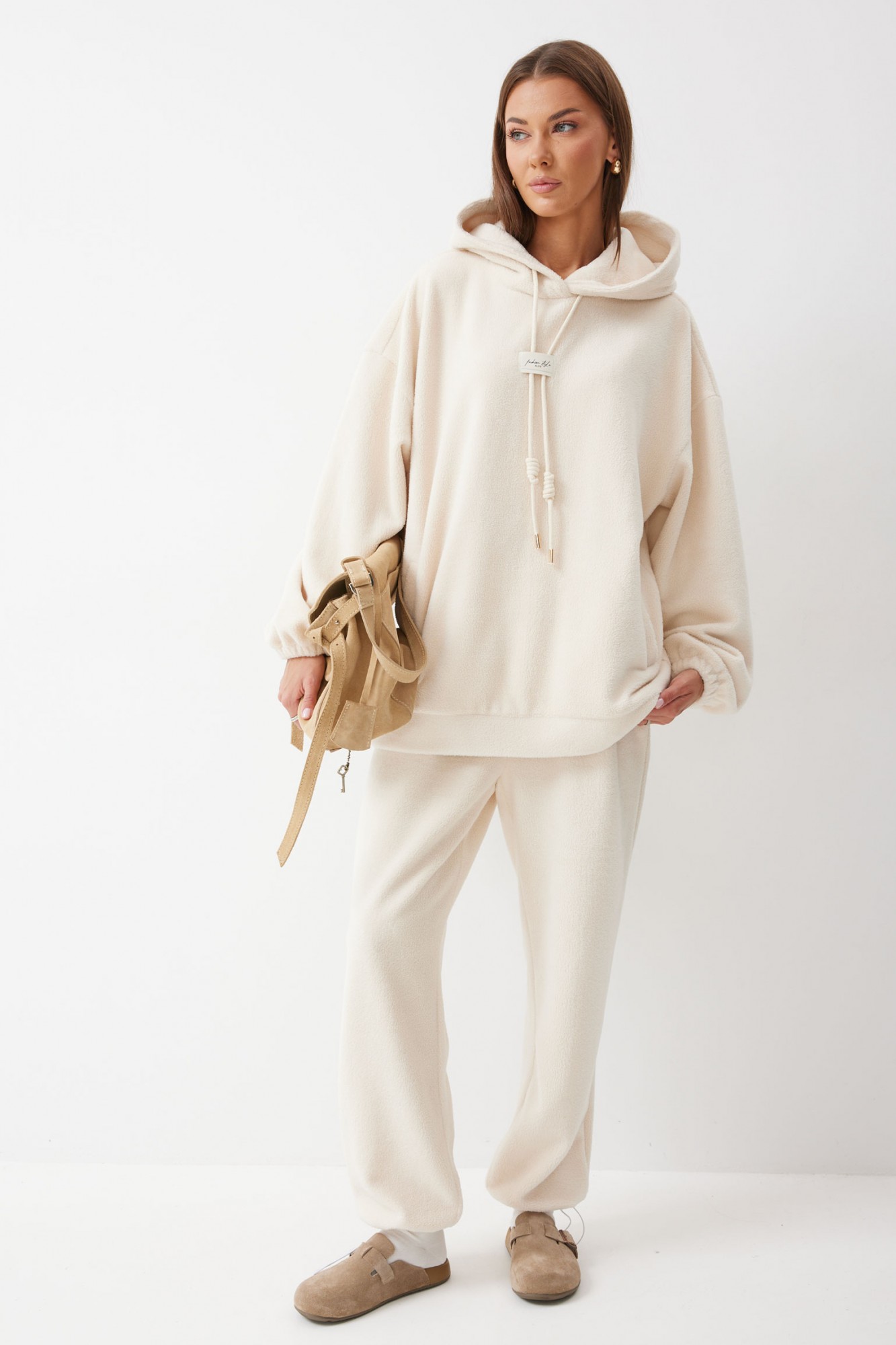 Джемпер прямого силуэта из комфортного трикотажного полотна. Горловина обработана капюшоном. Рукав со спущенной линией плеча, по низу на резинке. По низу джемпера притачной пояс. По переду декоративная нашивка и шнур. Обращаем ваше внимание, что фурнитура может отличаться от фото.