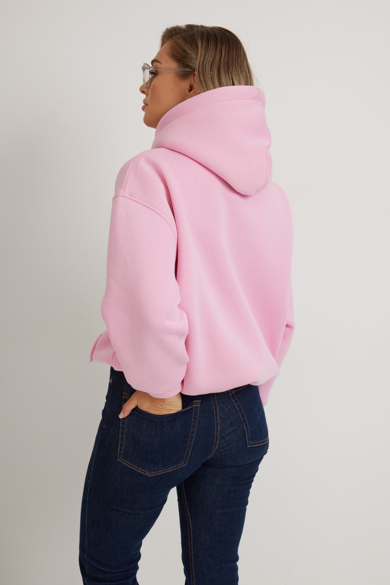 Утеплённый Худи изготовлен из качественного турецкого трикотажа. Ткань тёплая и приятная на ощупь, не пеленгуется, с изнанки на флисе. Толстовка со спущенной линией плеча, свободного силуэта, с двойным капюшоном, по переду карман по типу “кенгуру”. Снизу эластичная резинка стягивается фиксаторами. Крой oversize позволяет чувствовать себя в нем очень комфортно и стильно! Толстовка отлично смотрится на самые разные фигуры от 42 до 50.