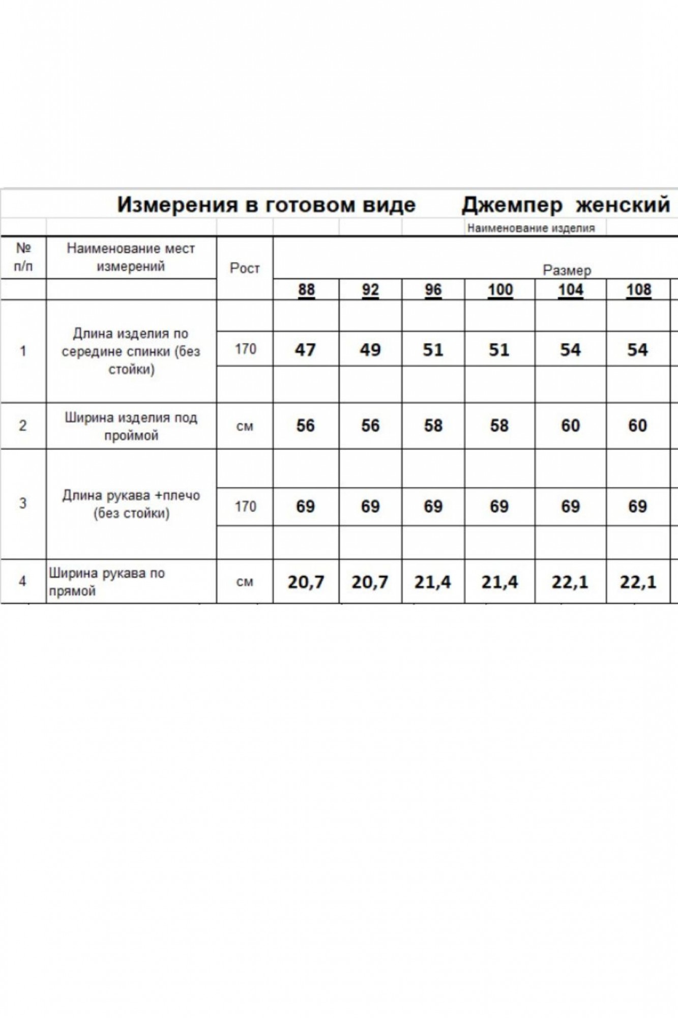 Таблица размеров