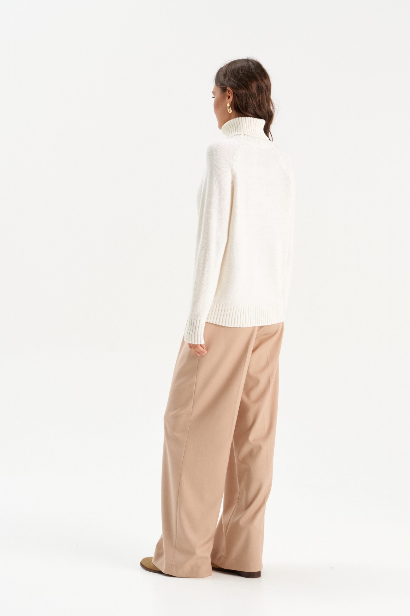 Стильный дизайн: Высокий воротник и простой крой делают этот свитер универсальным и подходящим для любого случая.