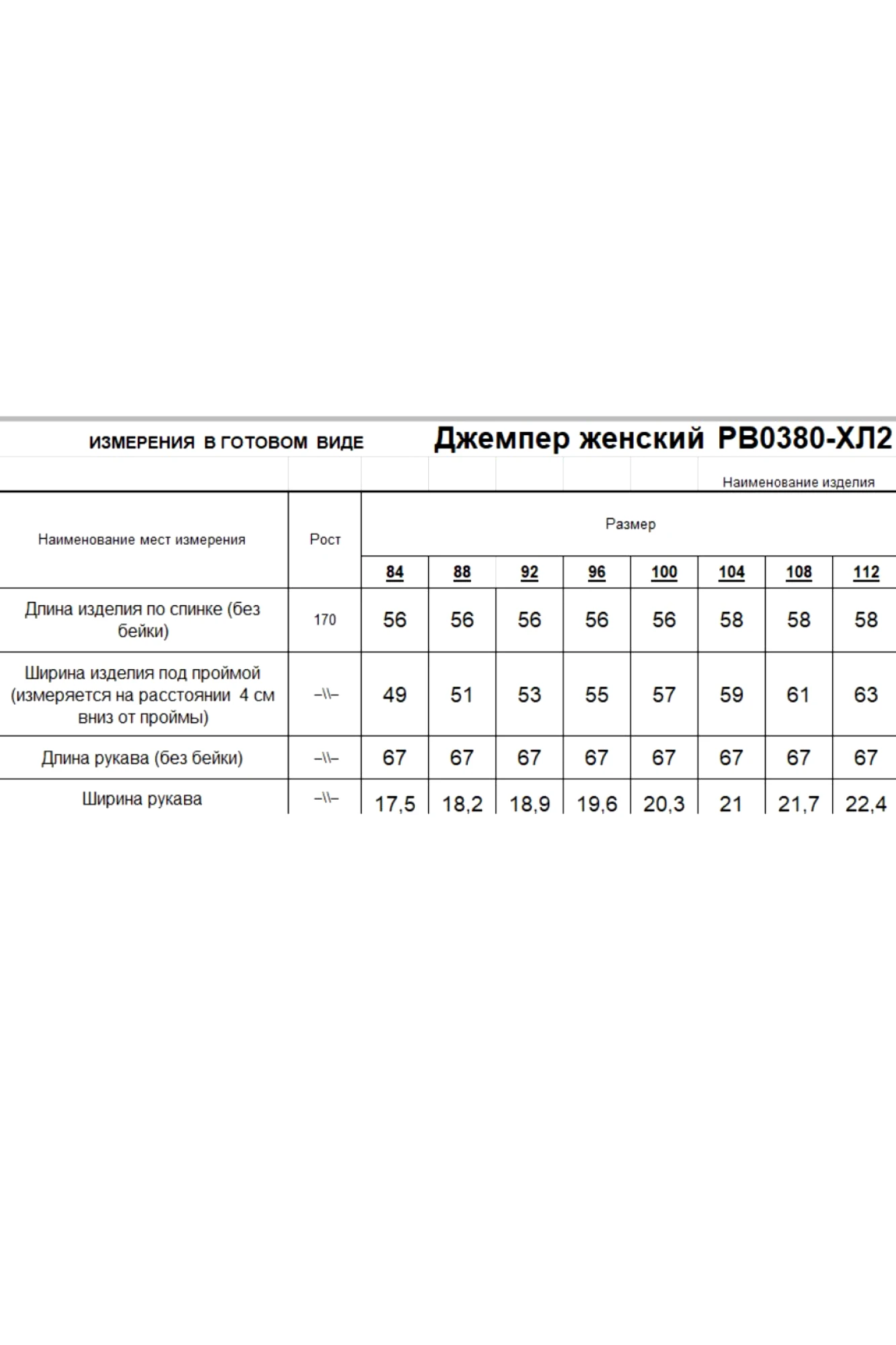 Таблица размеров