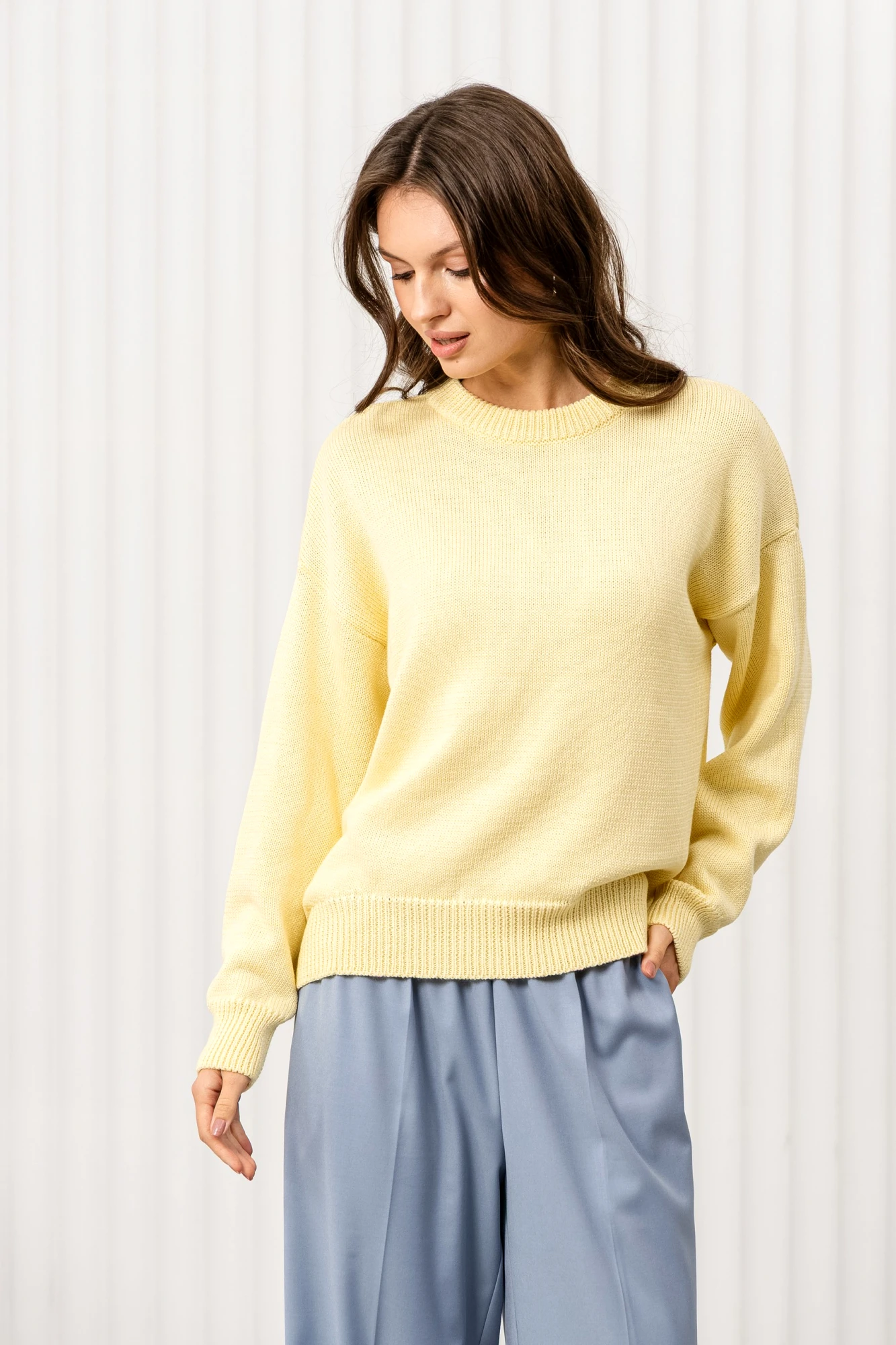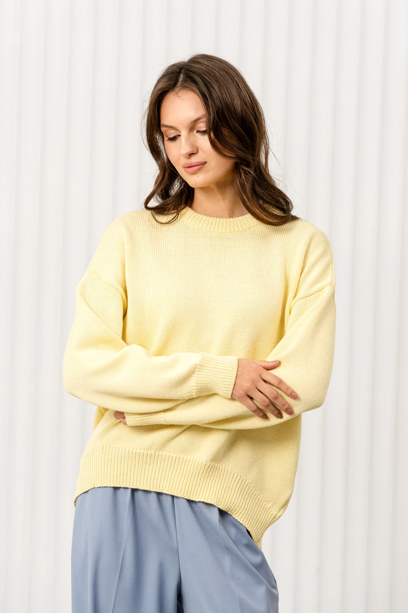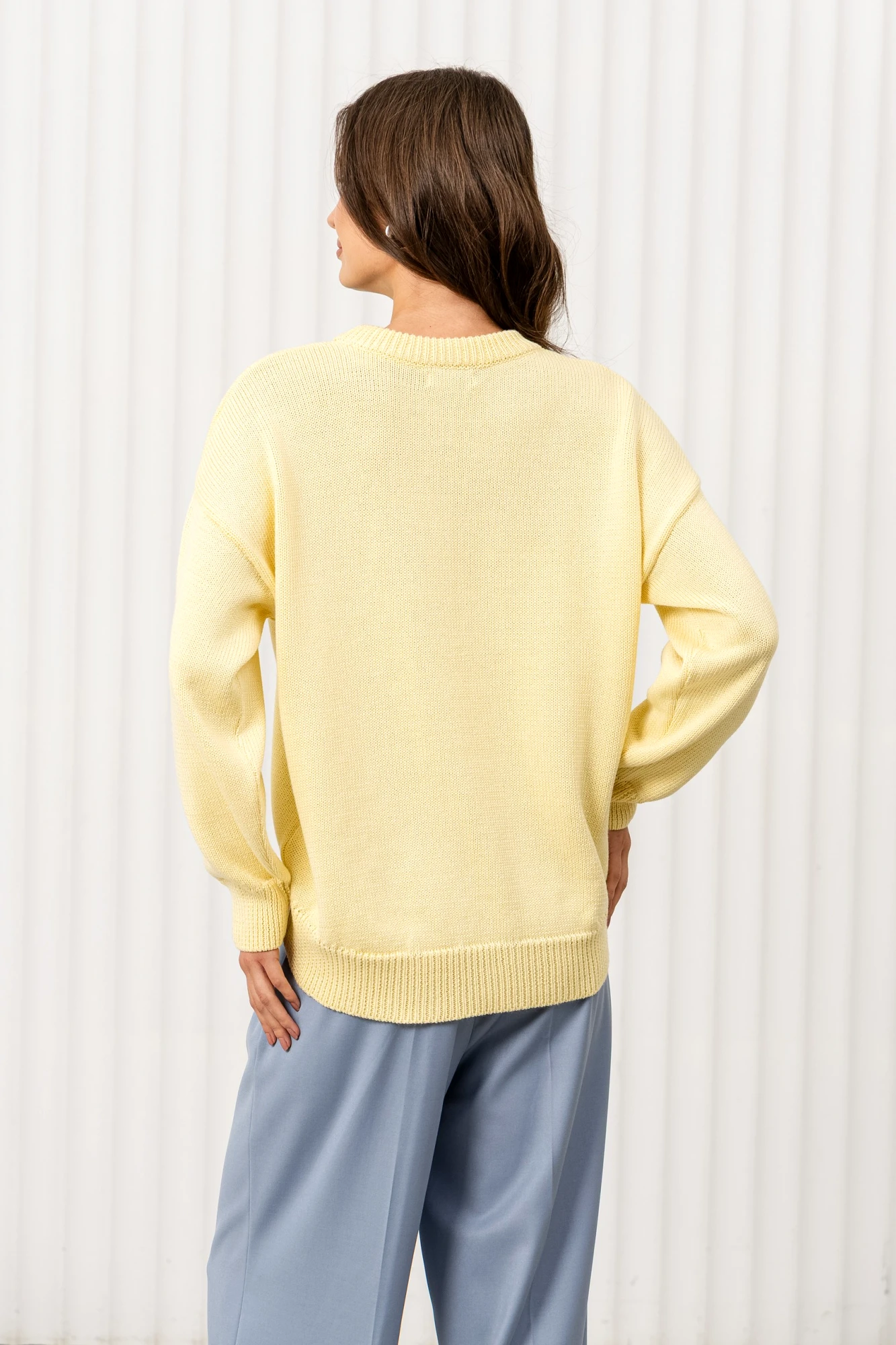 Крой: свободный, слегка удлинённый, что делает свитер универсальным для различных стилей и случаев.
