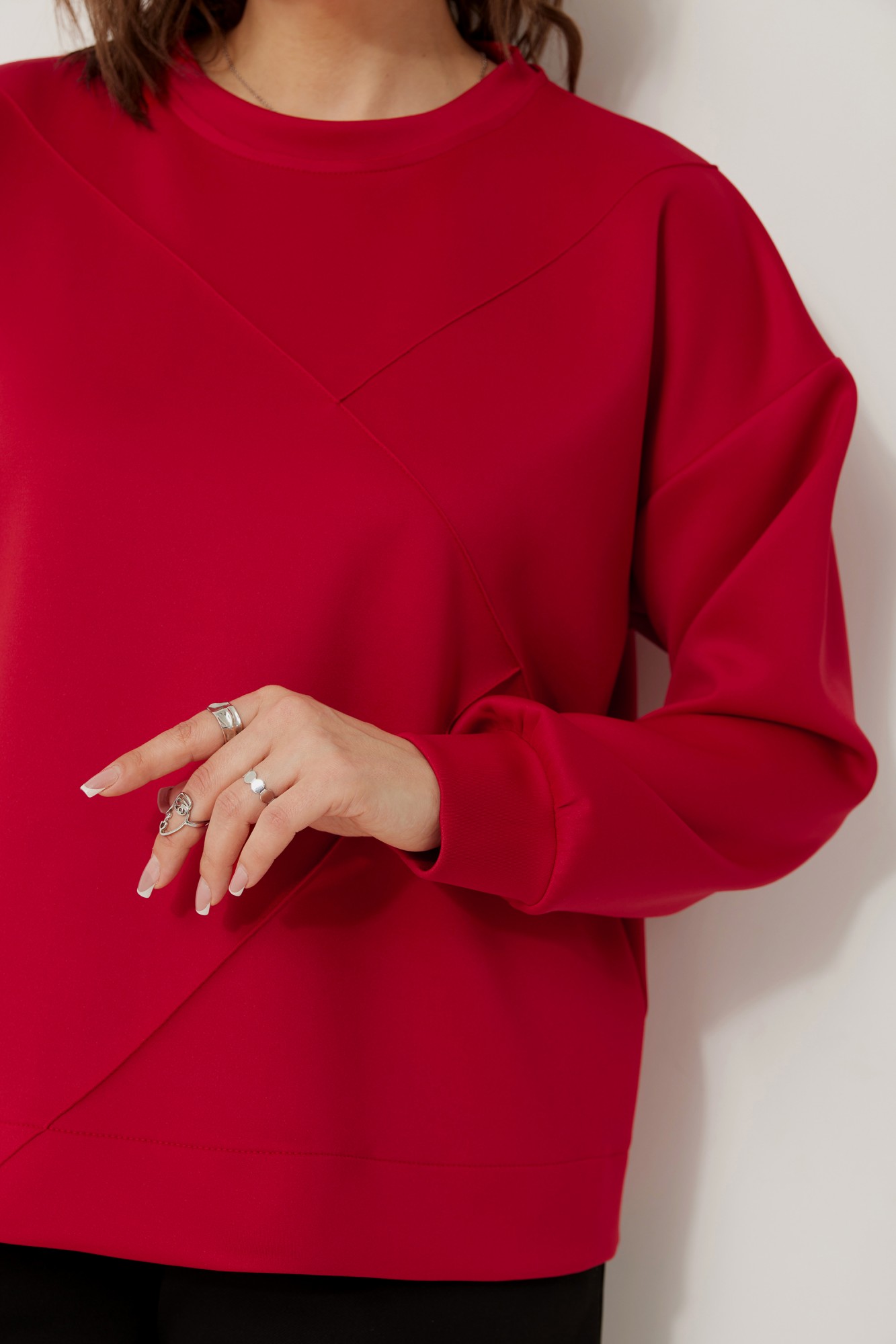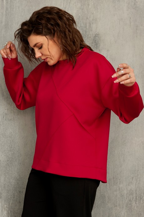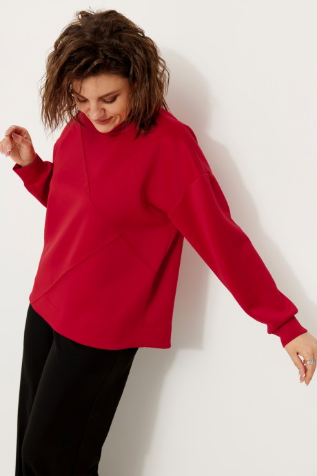 Удобный, яркий свитшот из мягкого, эластичного трикотажа позволит обратить на себя внимание и создаст отличное настроение! Свободный силуэт свитшота подарит чувство уюта и комфорта. Декоративная отделка бисерной строчкой правильно расставляет акценты, создавая нужные линии, что позволяет визуально подчеркнуть достоинства фигуры. Горловина полукруглой формы, с открытым срезом обработана притачной обтачкой из основного материала. Рукав втачной, со спущенной линией плеча и манжетой по низу. Низ изделия обработан обтачкой имеет форму полукруга.
