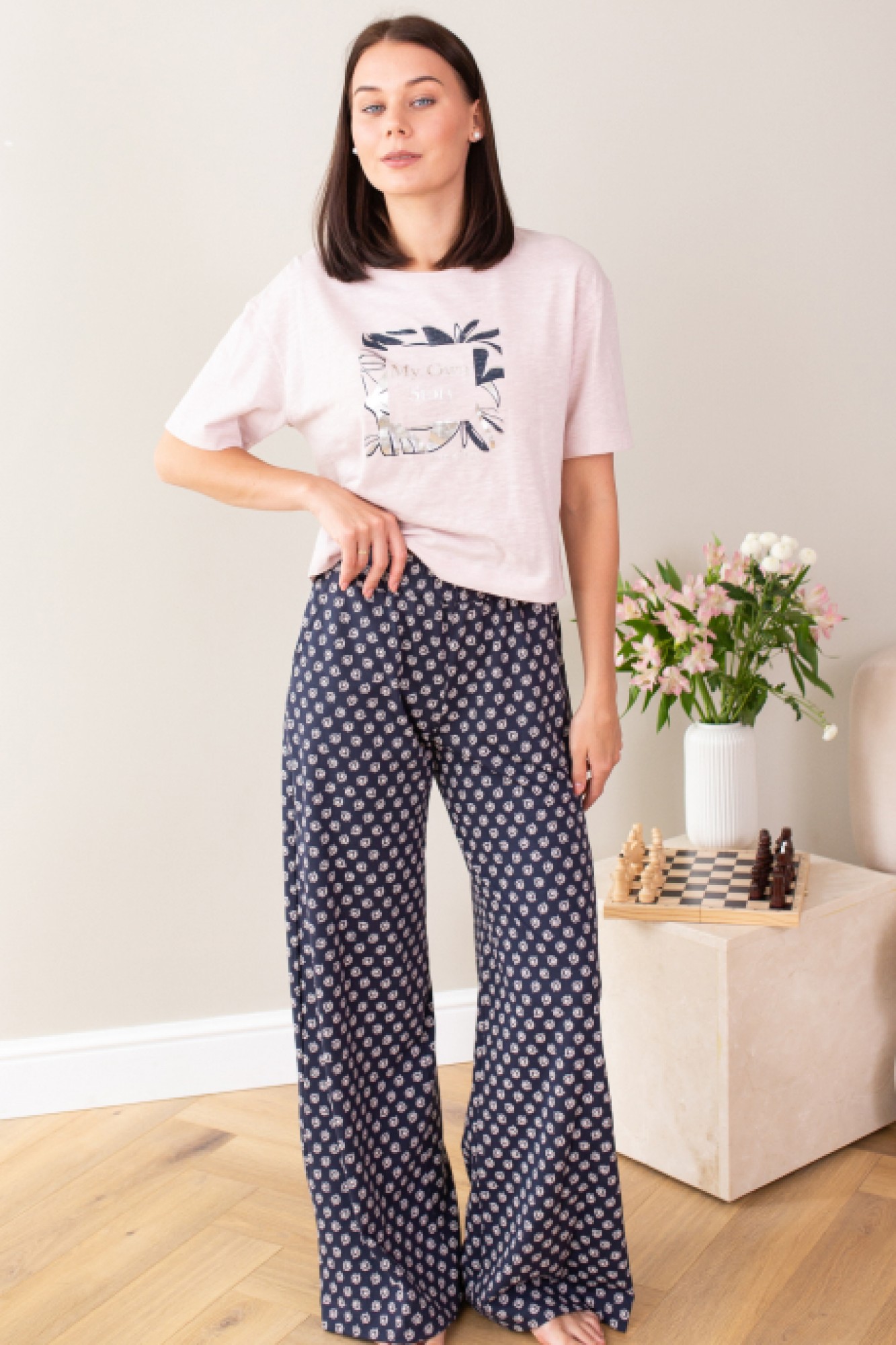 Пижама женская и высококачественного 100% хлопка. Комплект состоит из двух предметов - джемпера и брюк. Этот комплект отлично подойдет для повседневной домашней носки или для сна. Подарите себе удовольствие и стиль с этим комплектом.