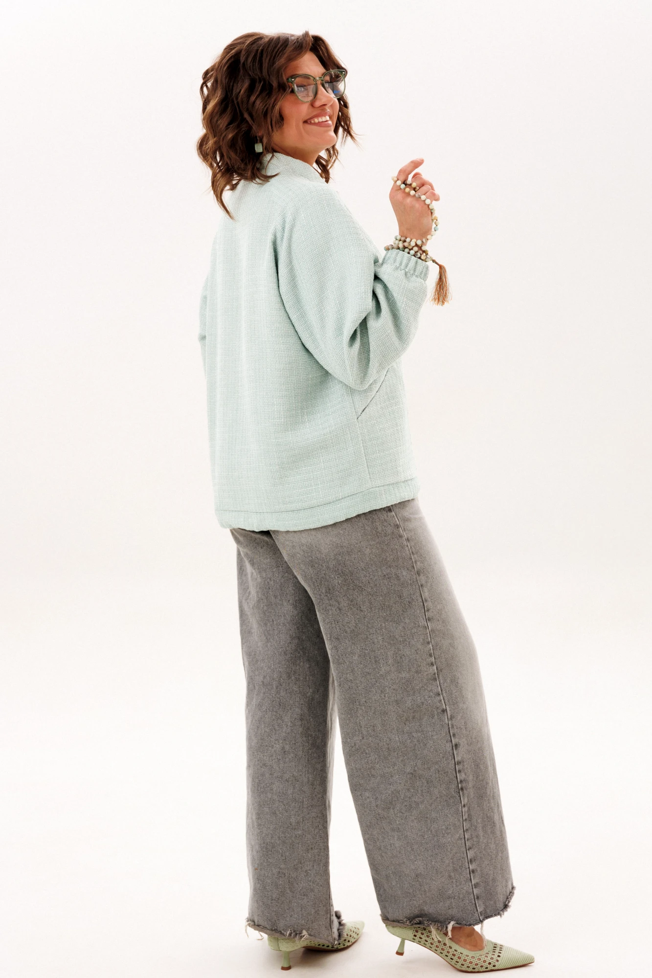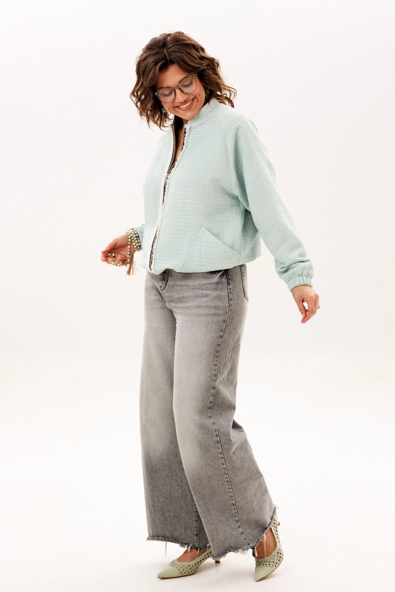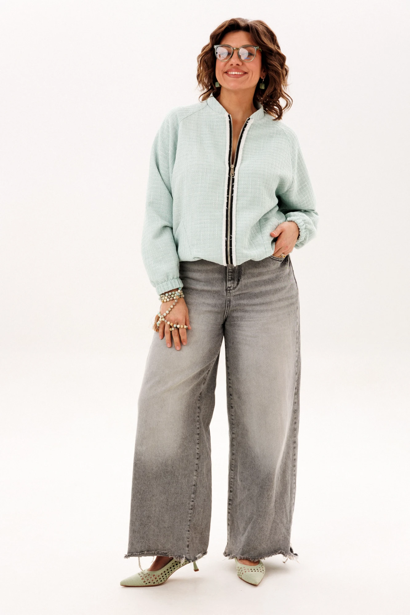 Этот блузон, словно воплощение непринужденной элегантности, предлагает ощущение комфорта, которое становится продолжением тебя. Его прямой силуэт, лишенный строгих границ, мягко следует за очертаниями фигуры, даря свободу каждому движению. Уют обрамляет горловину благодаря воротнику-стойке, создавая ощущение защищенности в прохладный день. Центральным элементом, приковывающим взгляд, служит застёжка-молния, чья фактурная текстура напоминает легкую, пушистую изморозь, придавая практичной детали неожиданно художественный эффект.