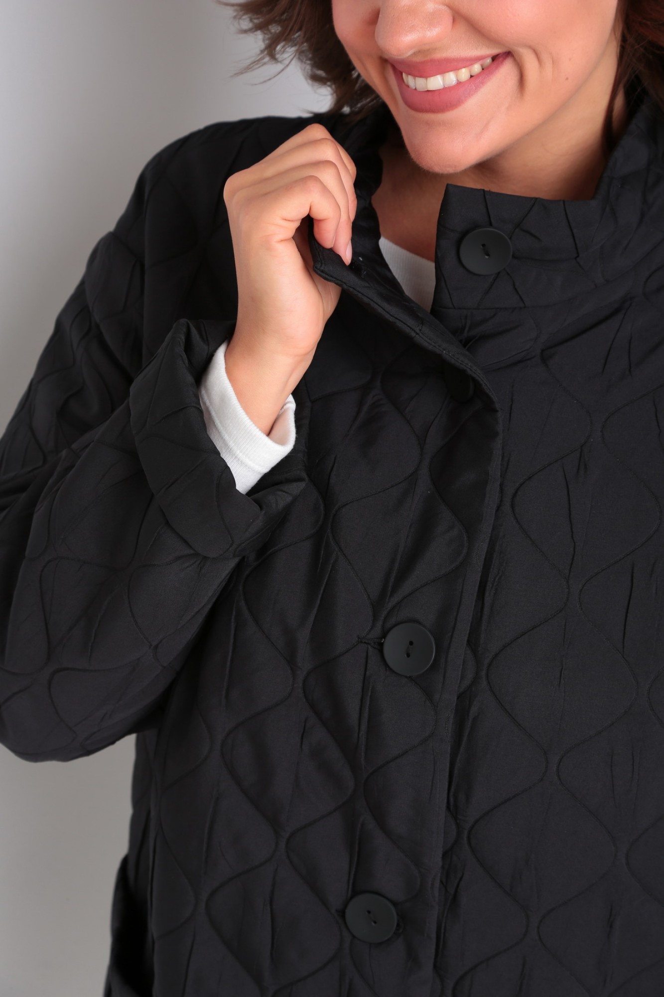 Кардиган женский с центральной застежкой на петли и пуговицы. Перед с накладными карманами, уходящими в боковой шов и до низа.Рукав втачной, одношовный с отложными манжетами. Воротник-стойка. Кардиган на подкладке.