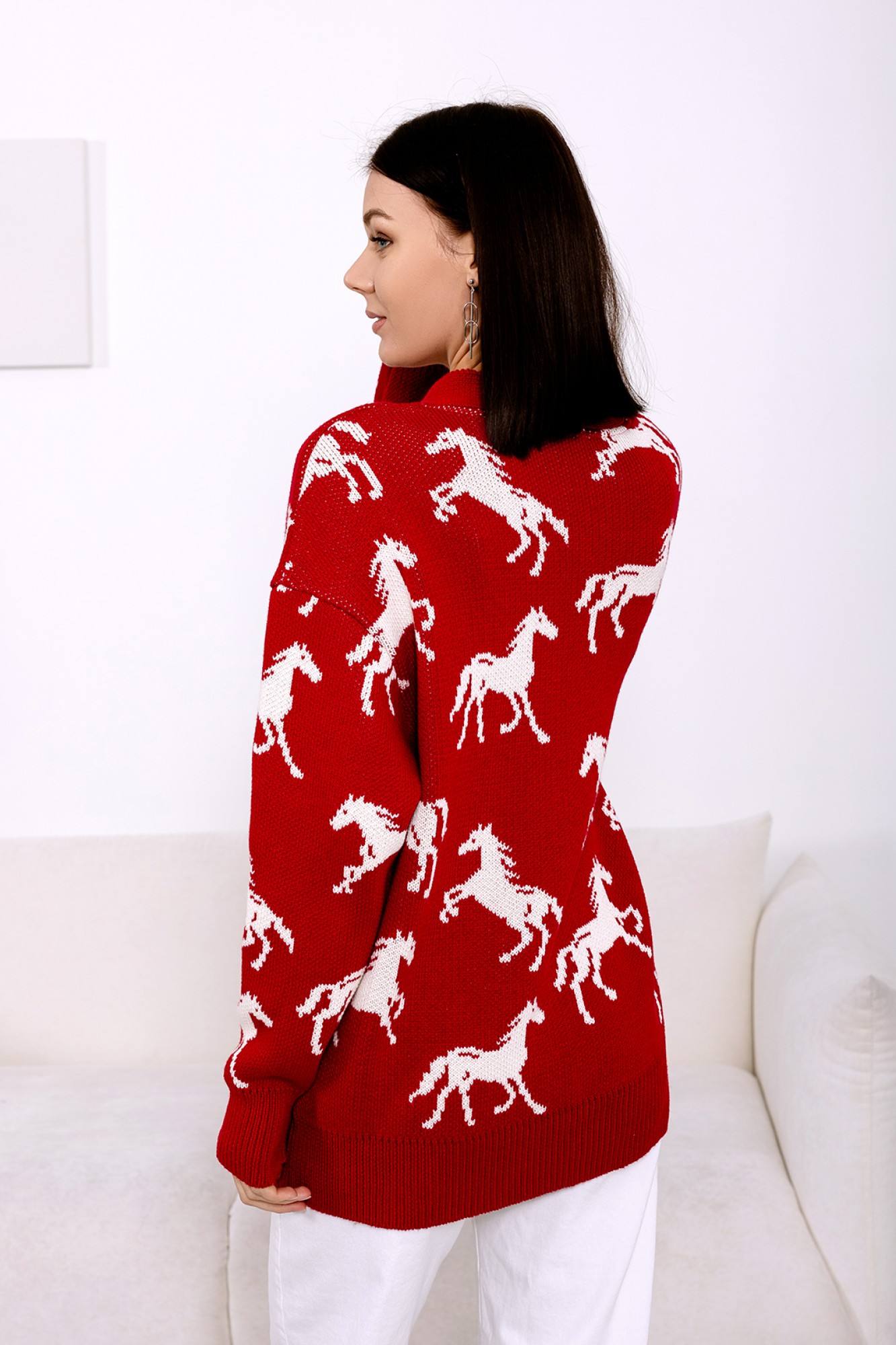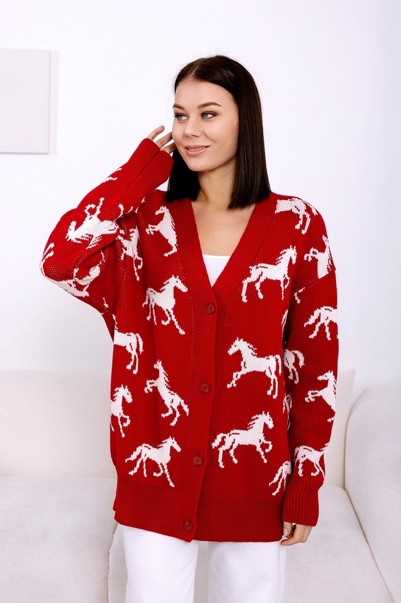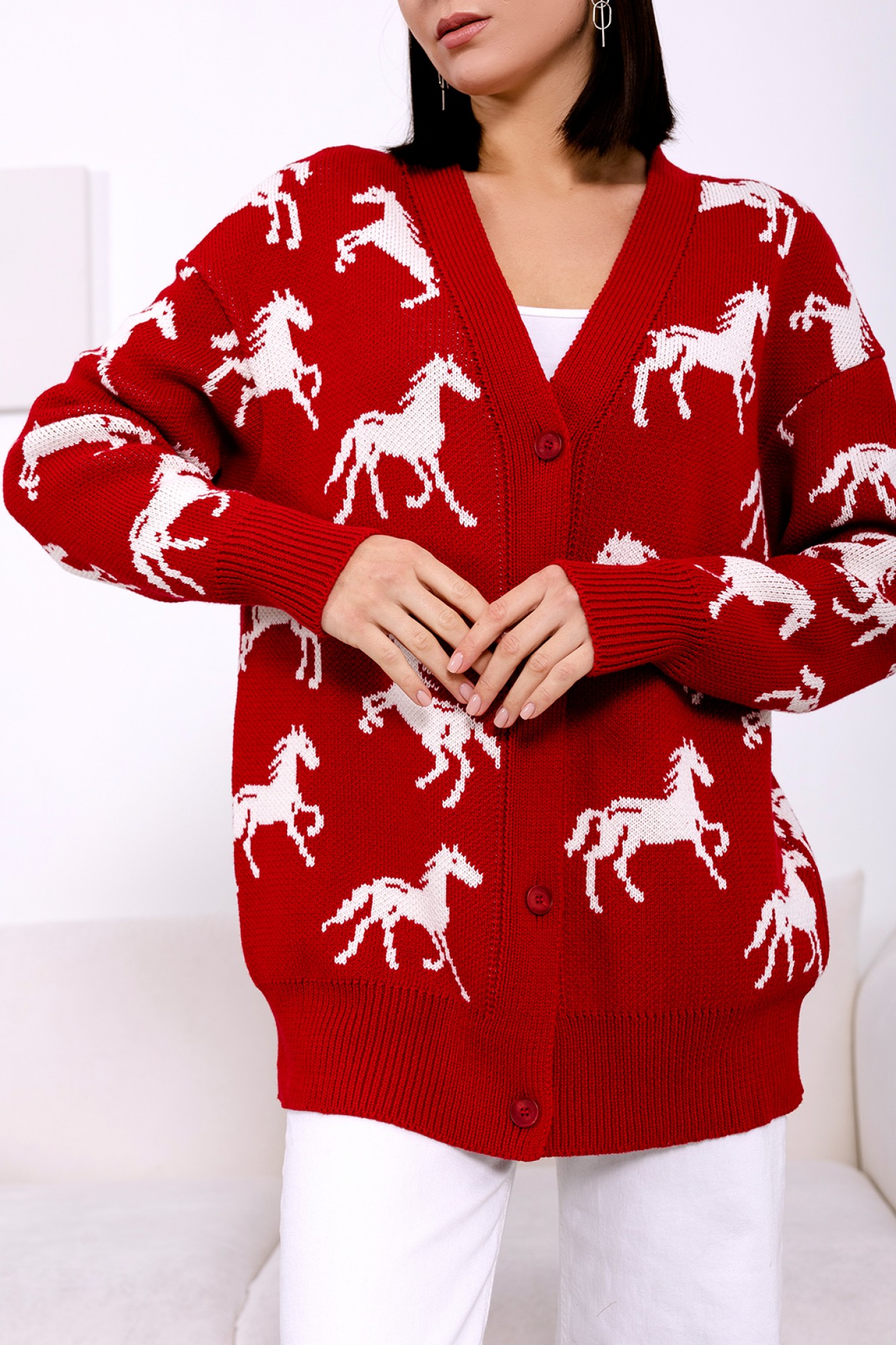 Кардиган RomGil РВ0072-ХЛ5 глубокий красный, молочный с ID товара 443459