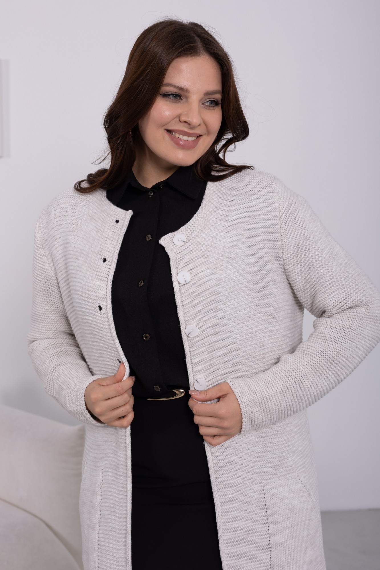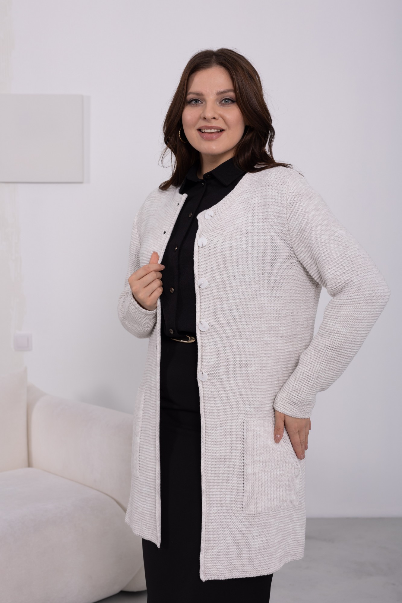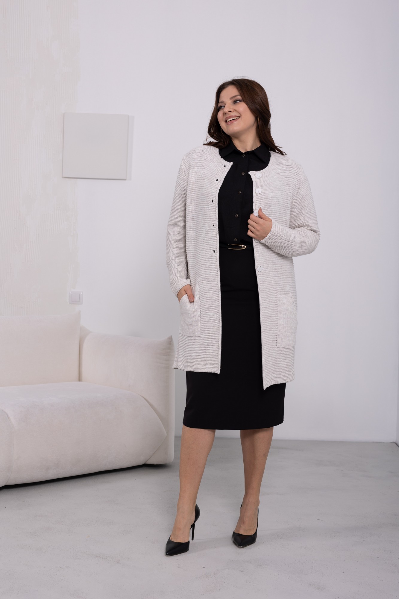 Жакет женский от производителя белорусского трикотажа Romgil — идеальное сочетание функциональности и элегантности. Одно из самых сильных преимуществ этого изделия - его натуральный состав. Сочетание его с брюками или юбкой — это идеальный способ подчеркнуть вашу профессиональную сторону для офиса, не утрачивая при этом комфорта. Также вы можете носить на рубашку или футболку, создавая модный слой для более структурированного casual образа. Прямой крой оверсайз скорректирует фигуру женщин больших размеров. Джемпер от Romgil идеально подойдет для беременных и будущих мам. Не упустите возможность обогатить ваш гардероб этим универсальным и стильным нарядным жакетом от Romgil.