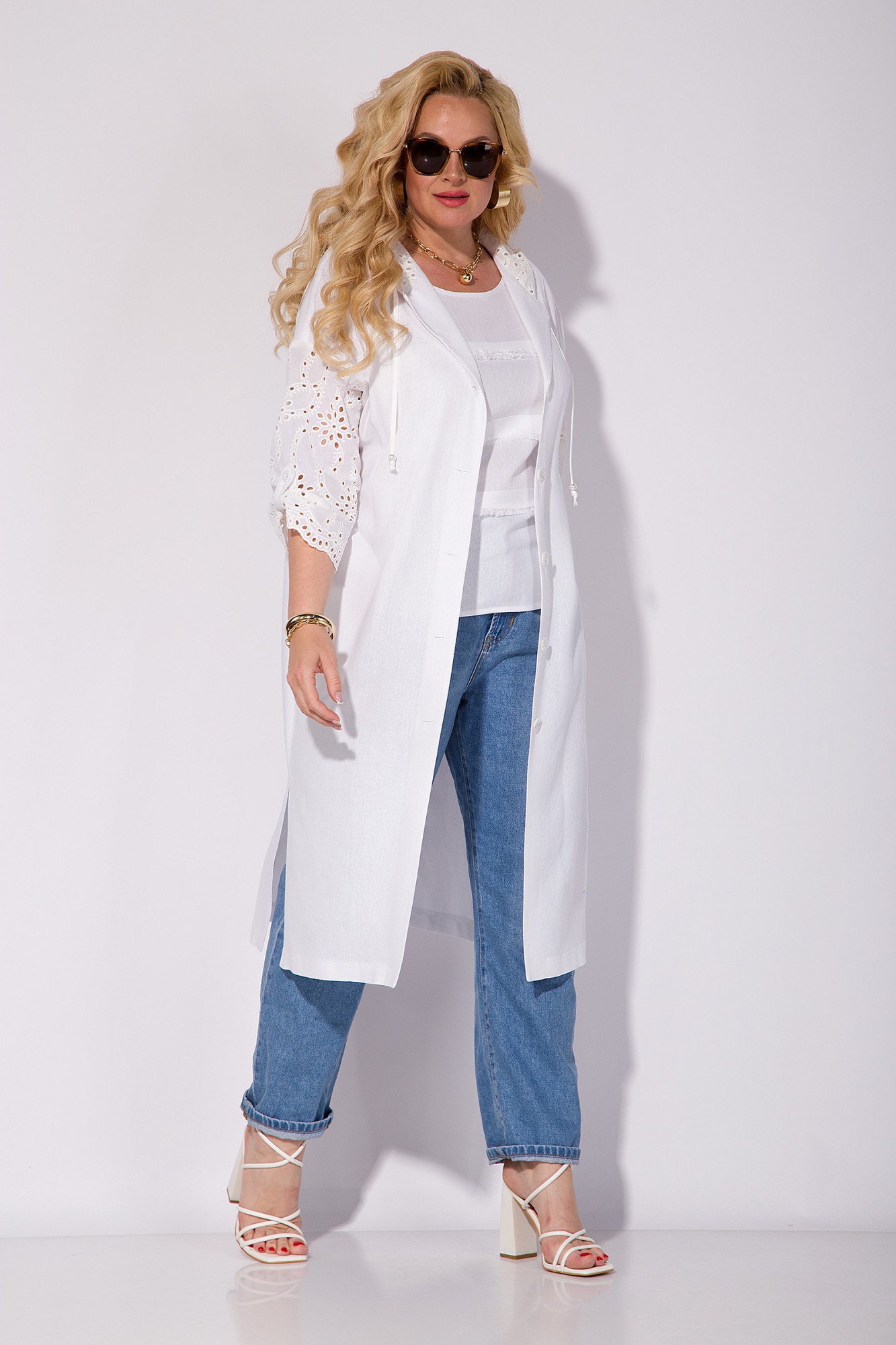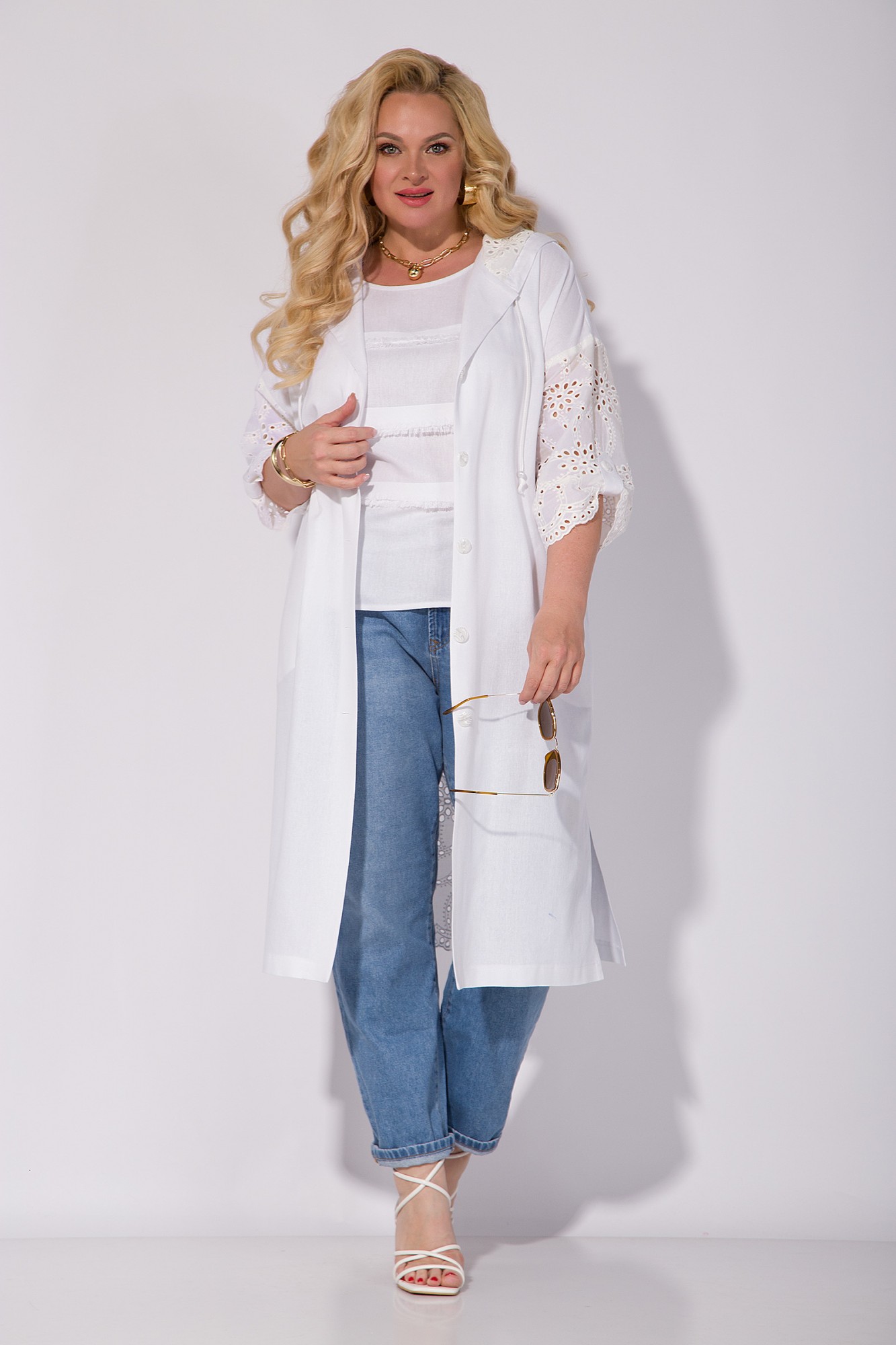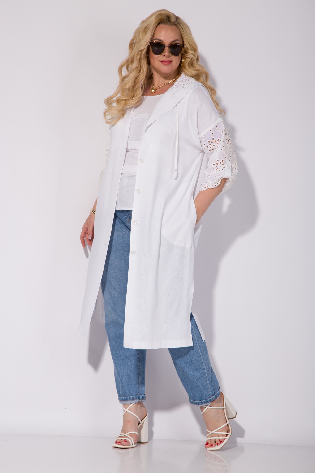 Эффектная модель в стиле «Бохо»: льняной топ + кардиган с хлопковым капюшоном! Эта комплект, который отлично подойдет для создания модного летнего образа в жаркие солнечные дни и не только! Удлиненный кардиган, прямого силуэта, с боковыми разрезами на свободу движения. Сбоку предусмотрены карманы. Рукав на спущенной пройме, длиной ¾-ти с патой – выполнен из хлопка с вышивкой ришелье. Застежка центральная, с подбортом на петли и пуговицы. Спинка с центральной вставкой из хлопка. В модели предусмотрен легкий, дышащий капюшон, который закроет вас от палящего летнего солнца! В комплекте идет топ, без рукавов из 100% льна! Модель с декоративными полосками по полочке и округлым вырезом горловины! Данный комплект подчеркнет вашу фигуру и стиль, сделает любой образ более интересным и модным, а также обеспечит вам максимальный комфорт в любой ситуации. Не упустите возможность приобрести прекрасную модель которая станет вашим любимым вариантом на много лет вперед!