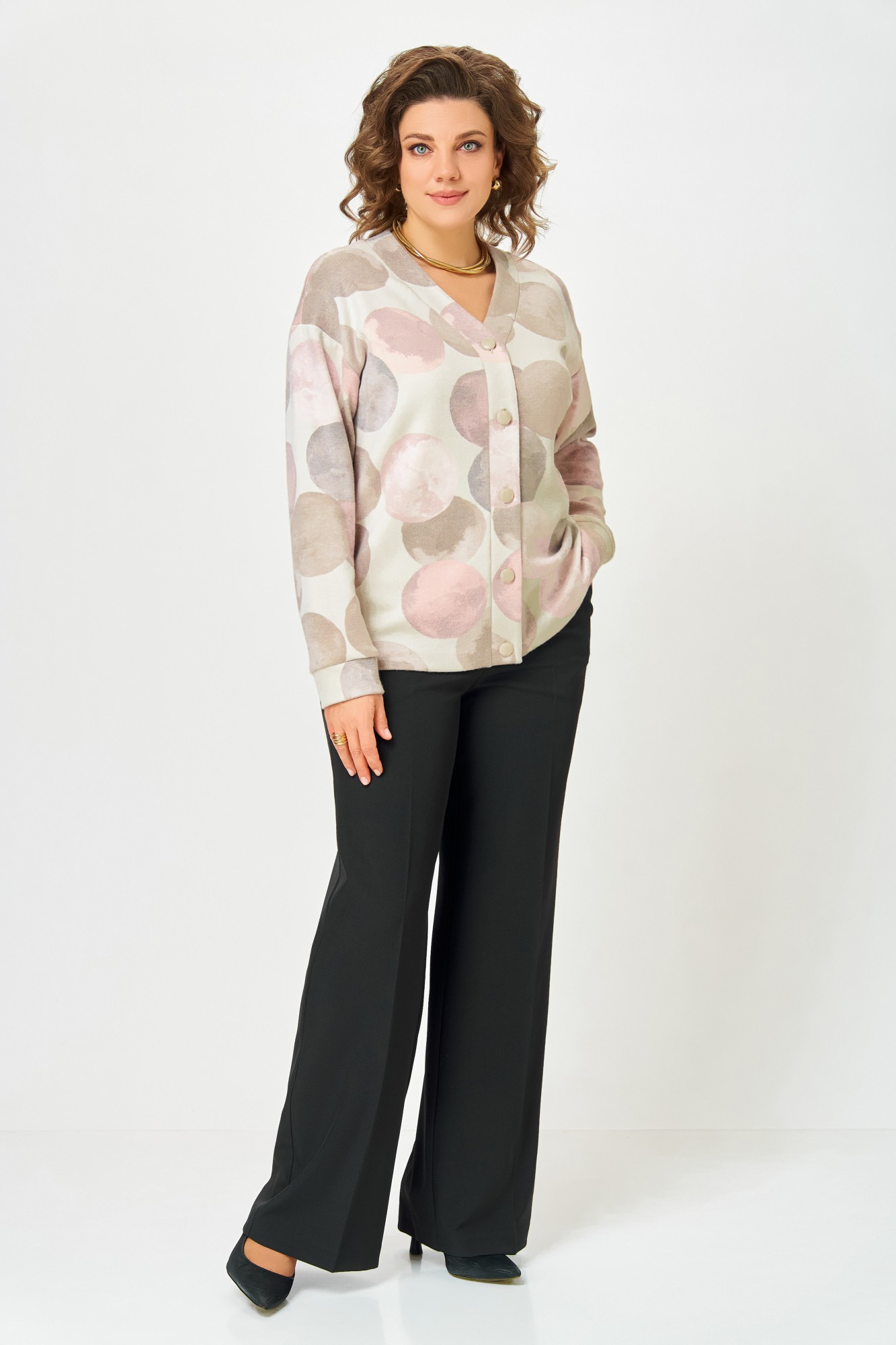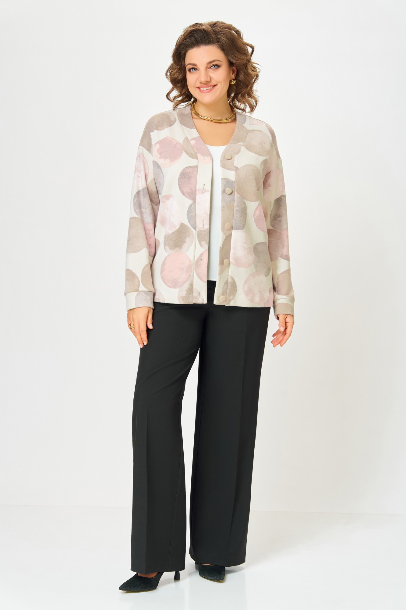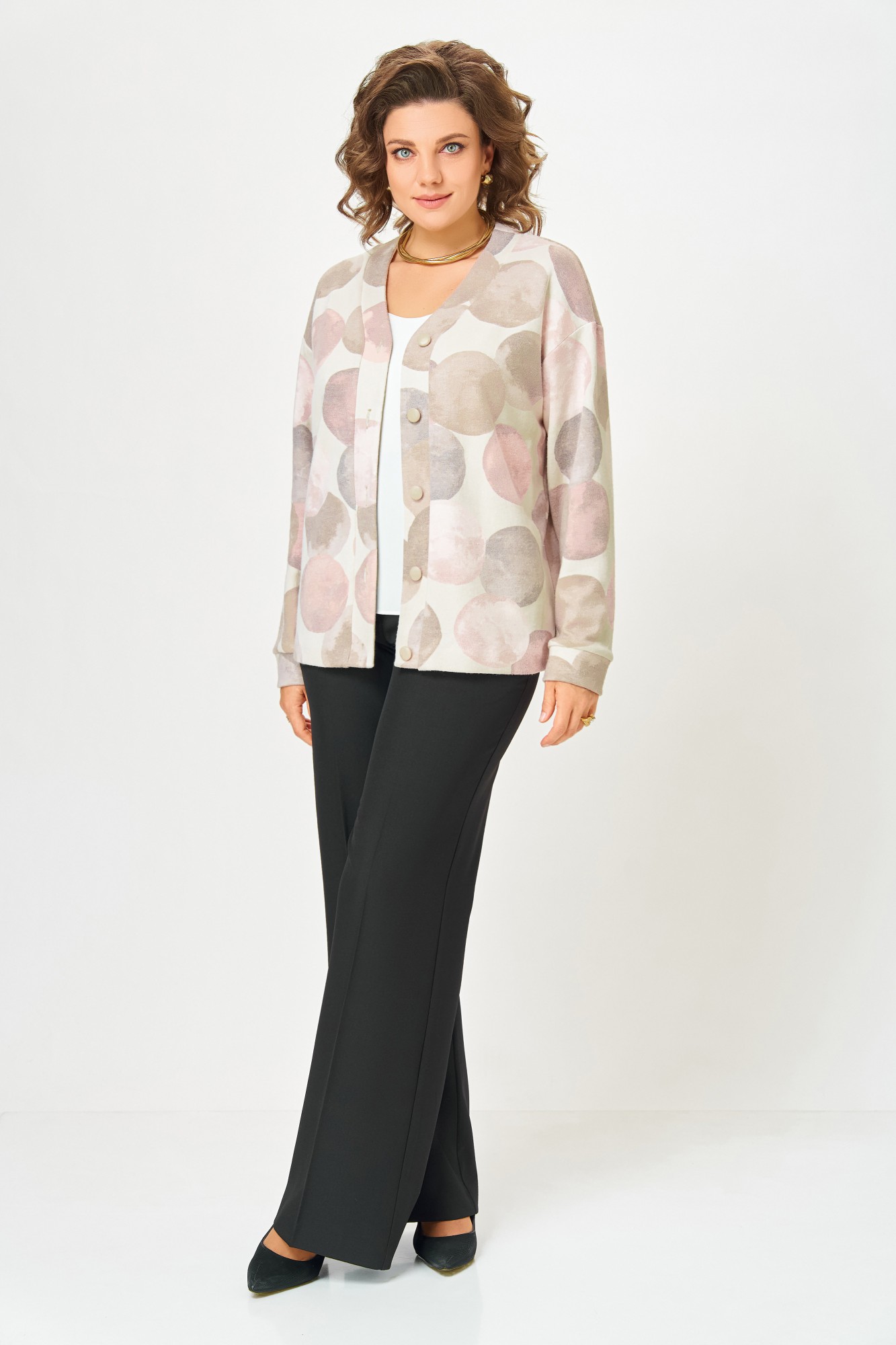 Кардиган Swallow 889 .1 Молочный, принт