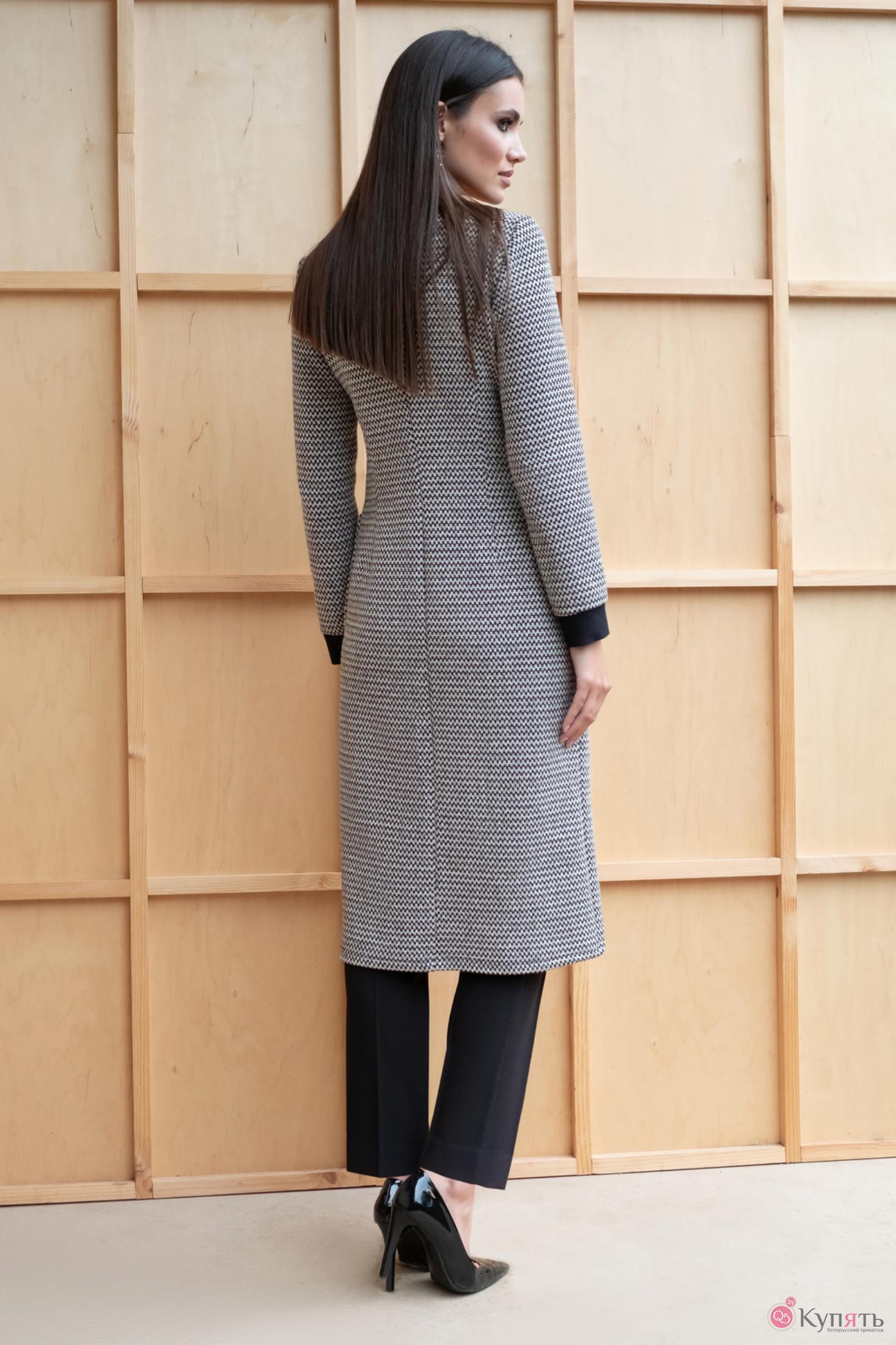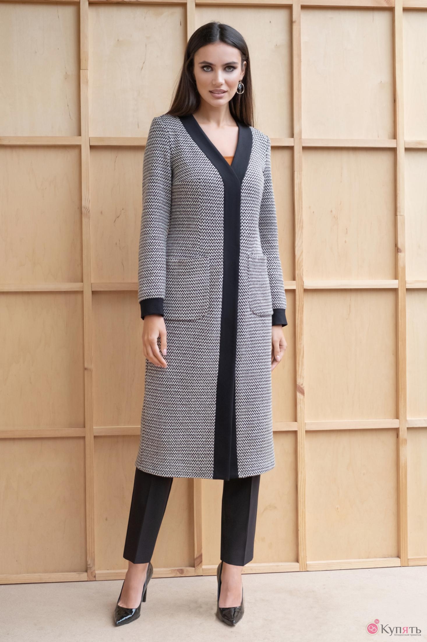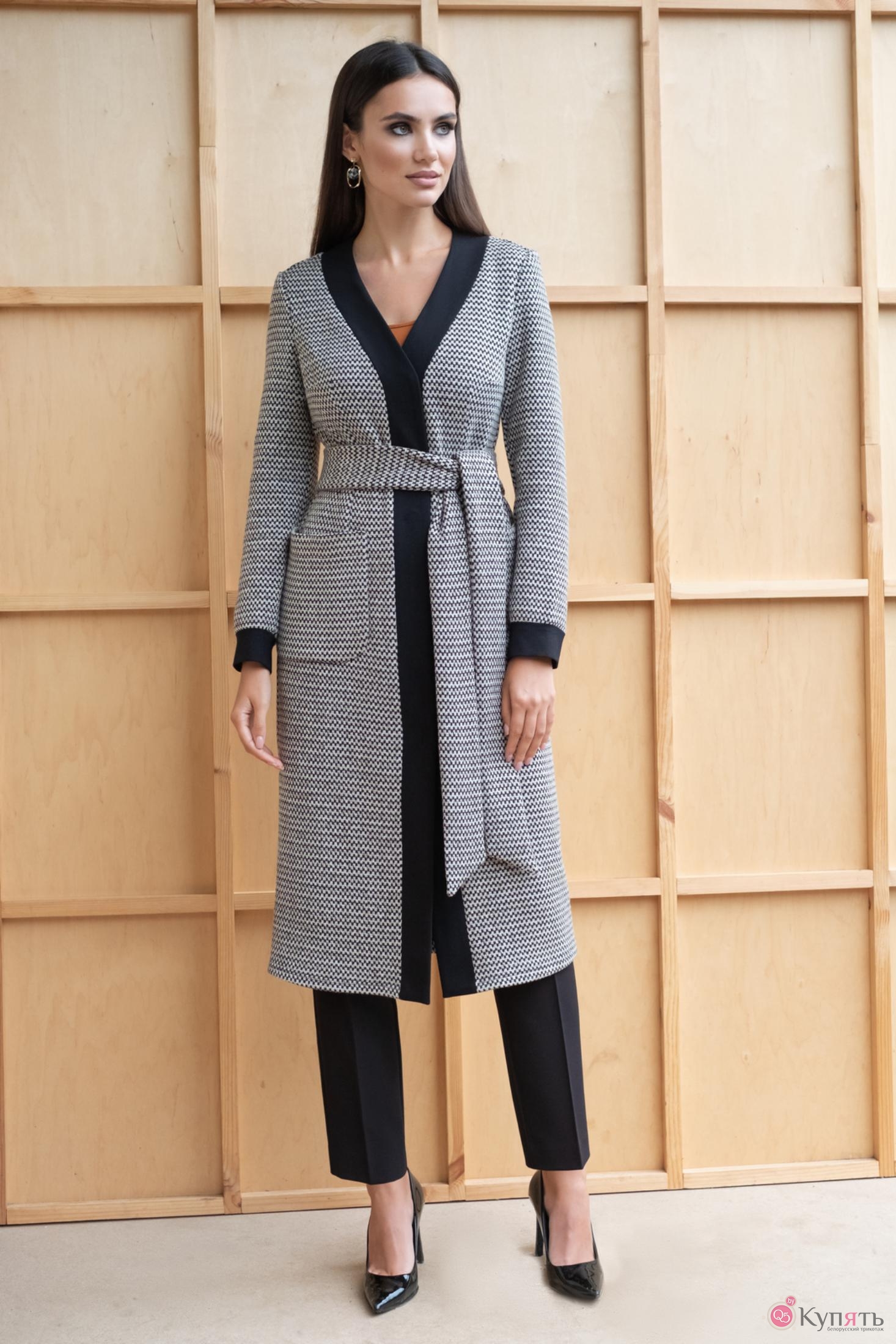Трикотажный кардиган – универсальная и практичная вещь, незаменимая в любое время года. Длинные кардиганы, больше напоминающие пальто, в этом сезоне очень популярны. Они выглядят очень стильно, они удобные и уютные. Кардиган женский полуприлегающего силуэта предназначен для повседневной носки в осенне-весенний период. Кардиган без подкладки, в комплект идет завязывающийся пояс. Перед кардигана с центральной бортовой застежкой на планку из отделочного материала. Планка переда переходит в планку горловины. Застегивается на 6 пришивных кнопок. На переде имеются талиевые вытачки и нагрудные, которые выходят из бокового шва. Также на переде имеются накладные карманы с закругленными углами по низу кармана. Спинка со средним швом и талиевыми вытачками. Рукава втачные одношовные длинные. Низ рукава обработан притачной манжетой из отделочного материала. Горловина V-образной формы, обработана притачной планкой из отделочного материала. Тип ткани: костюмно-плательная (трикотажное полотно).