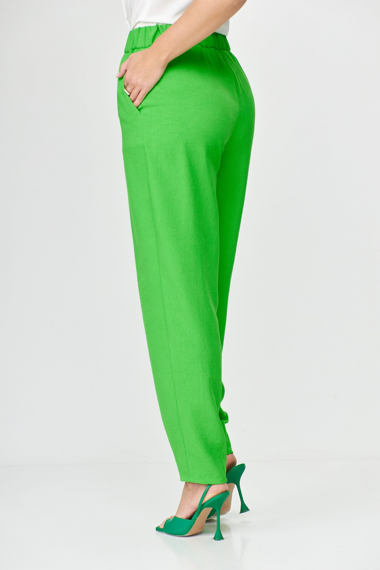 Брюки женские, свободного кроя. Слегка заужены к низу, покроя оверсайз. Прорезные карманы в боковых швах. Притачной пояс с эластичной тесьмой. По низу брюк декоративные вытачки придающие зауженный силуэт. Застежка на 2 пуговицы и молнию с цельнокроеным гульфиком. Так же можно приобрести по отдельности жакет артикул 6001 Abbi или комплектом 5004 Abbi.