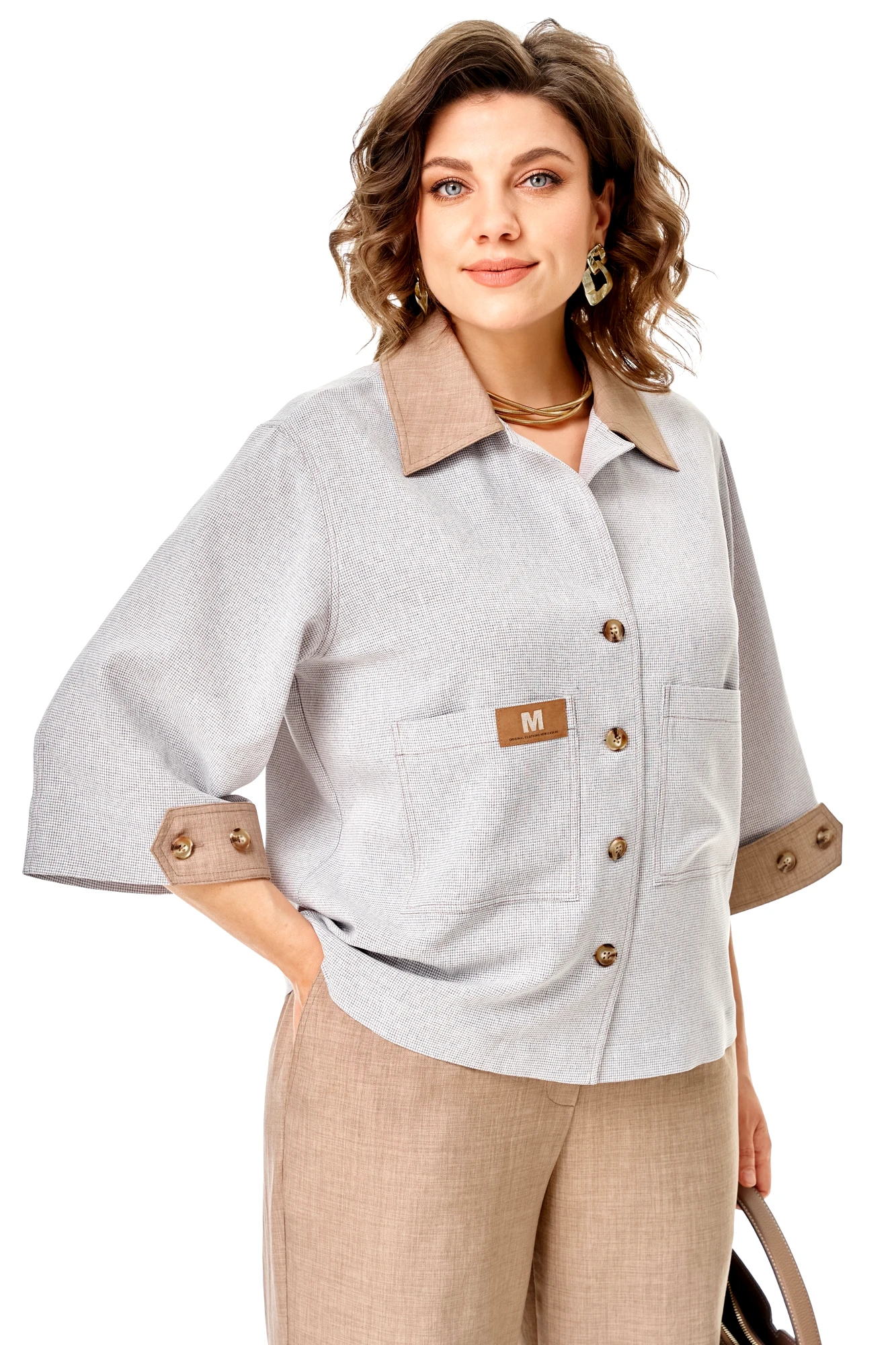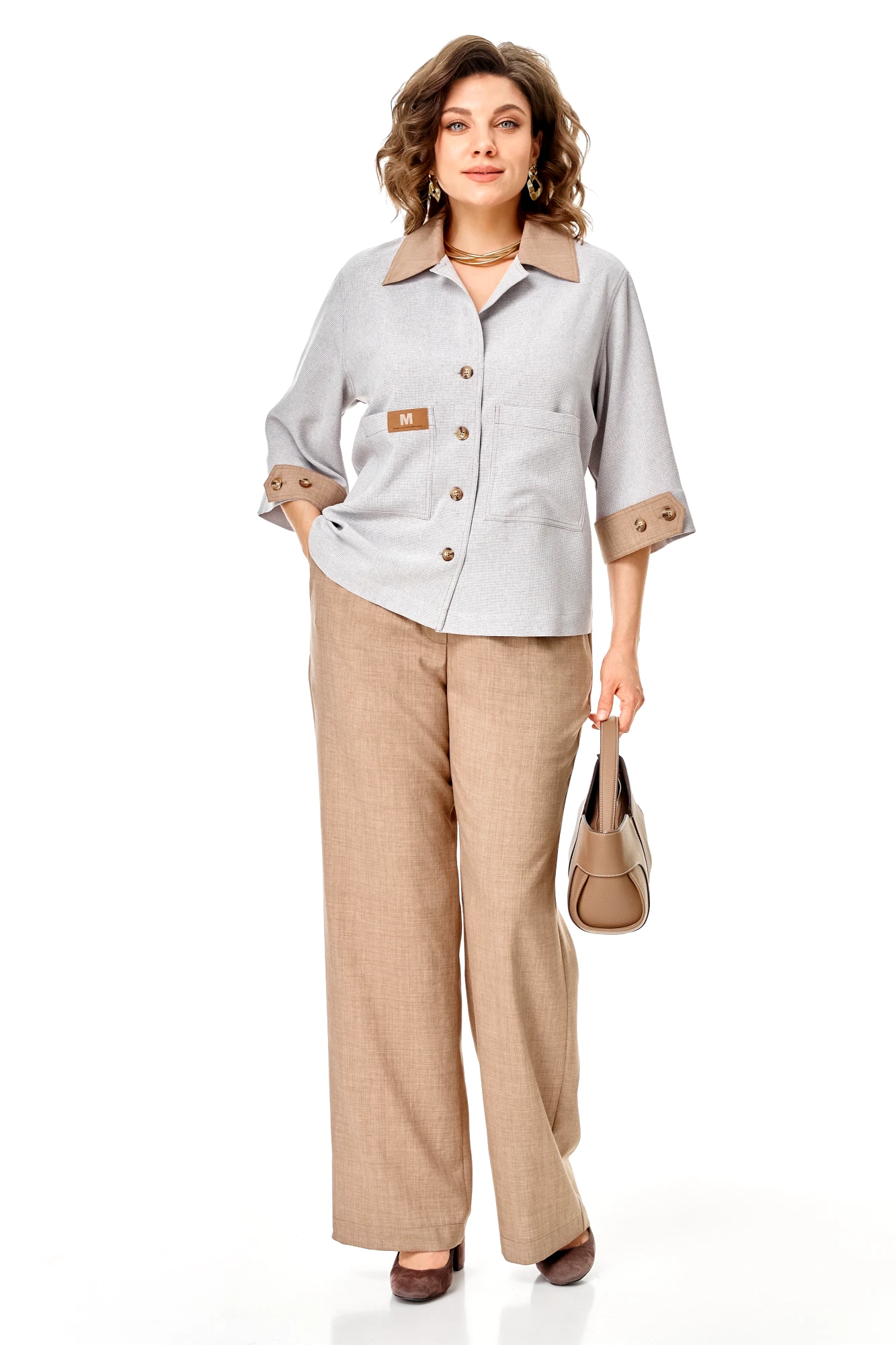 Брючный костюм Aira Style 24255 двойка серо-бежевый