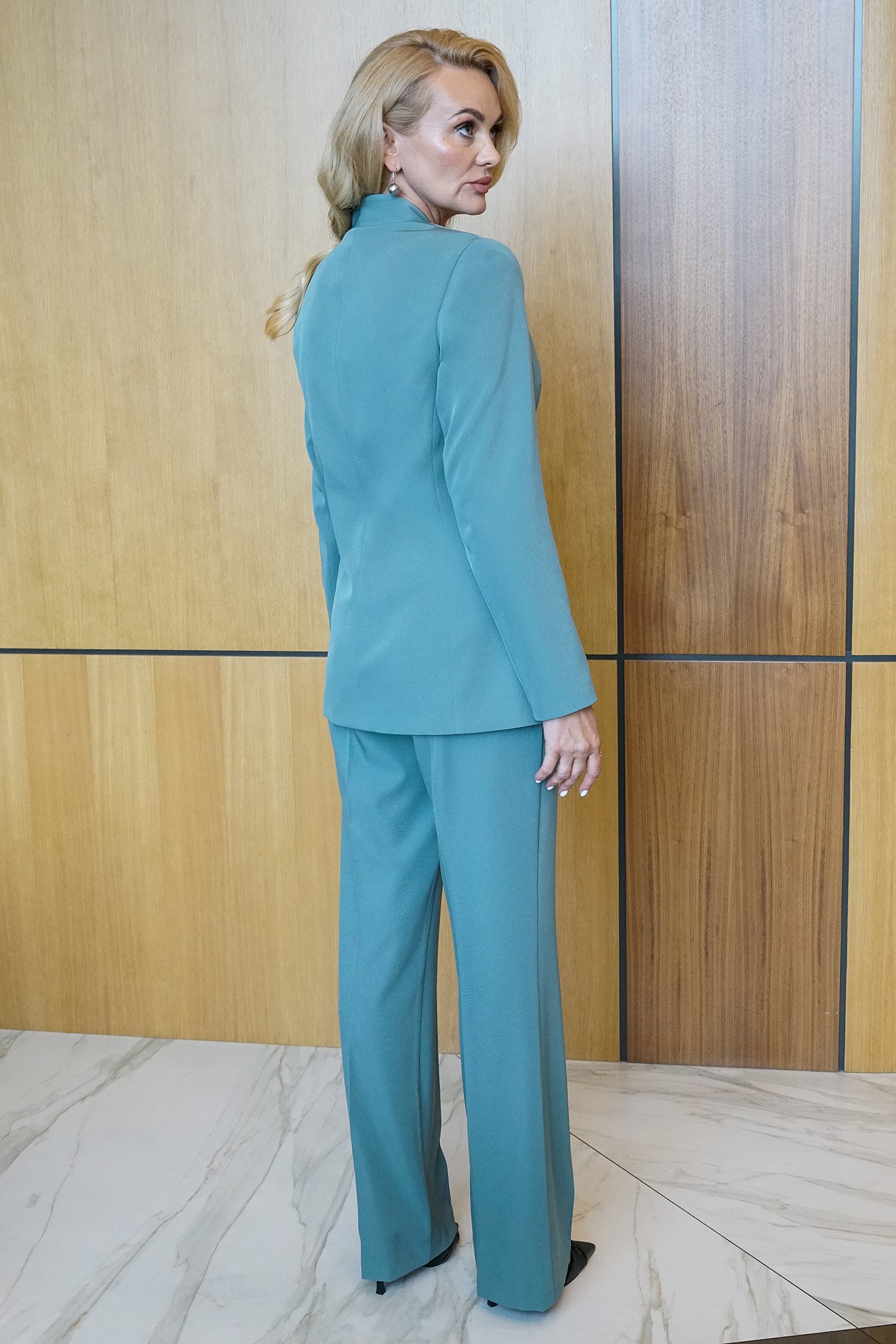 Жакет полуприлегающего силуэта, на подкладке, с двухбортной застёжкой на петлю, пуговицу и с внутренней застёжкой на петлю, пуговицу.