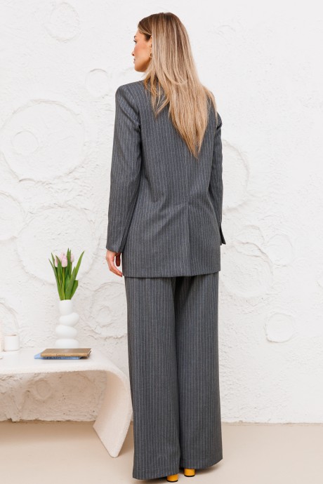 Костюм трехпредметный: состоящий из брюк,жакета и галстука. Жакет прямого силуэта. По переду нагрудная вытачка, переходящая в прорезной карман с клапаном. Двухбортная застёжка на петли-пуговицы. Рукав двухшовный, на логтевом шве отлетная шлица. Длина рукава 63 см. Длина изделия 77 см. Брюки прямого силуэта на притачном поясе.По переду застежка на тесьму-молнию.По боковым действующие карманы.