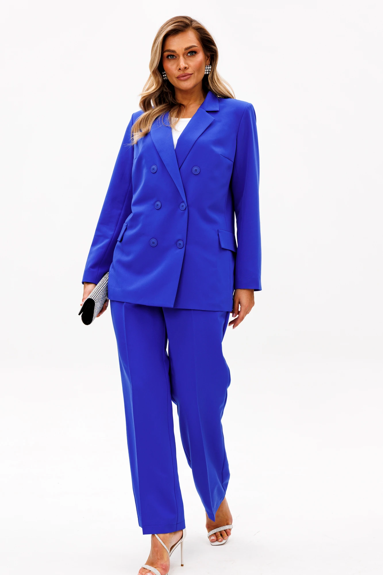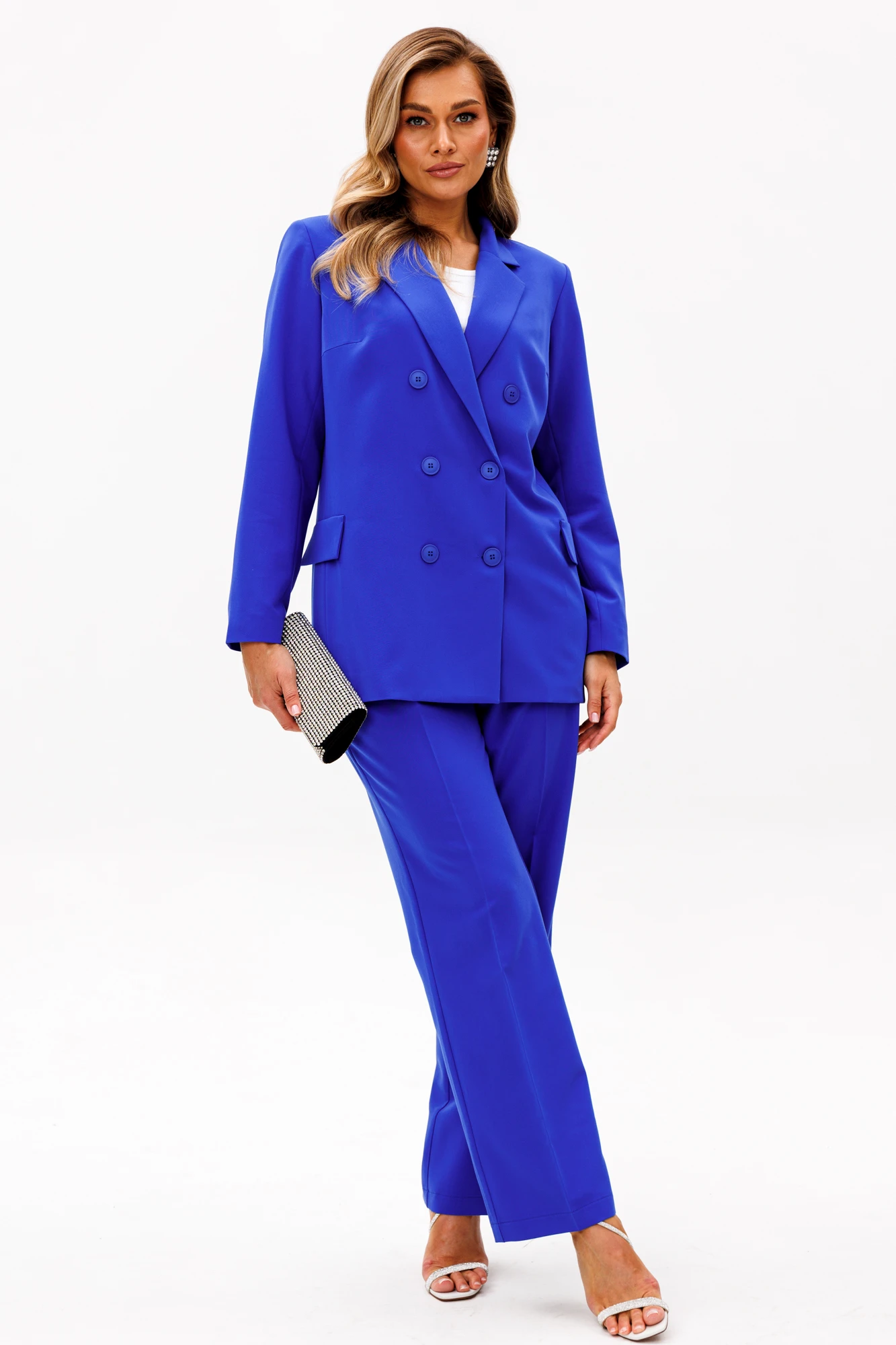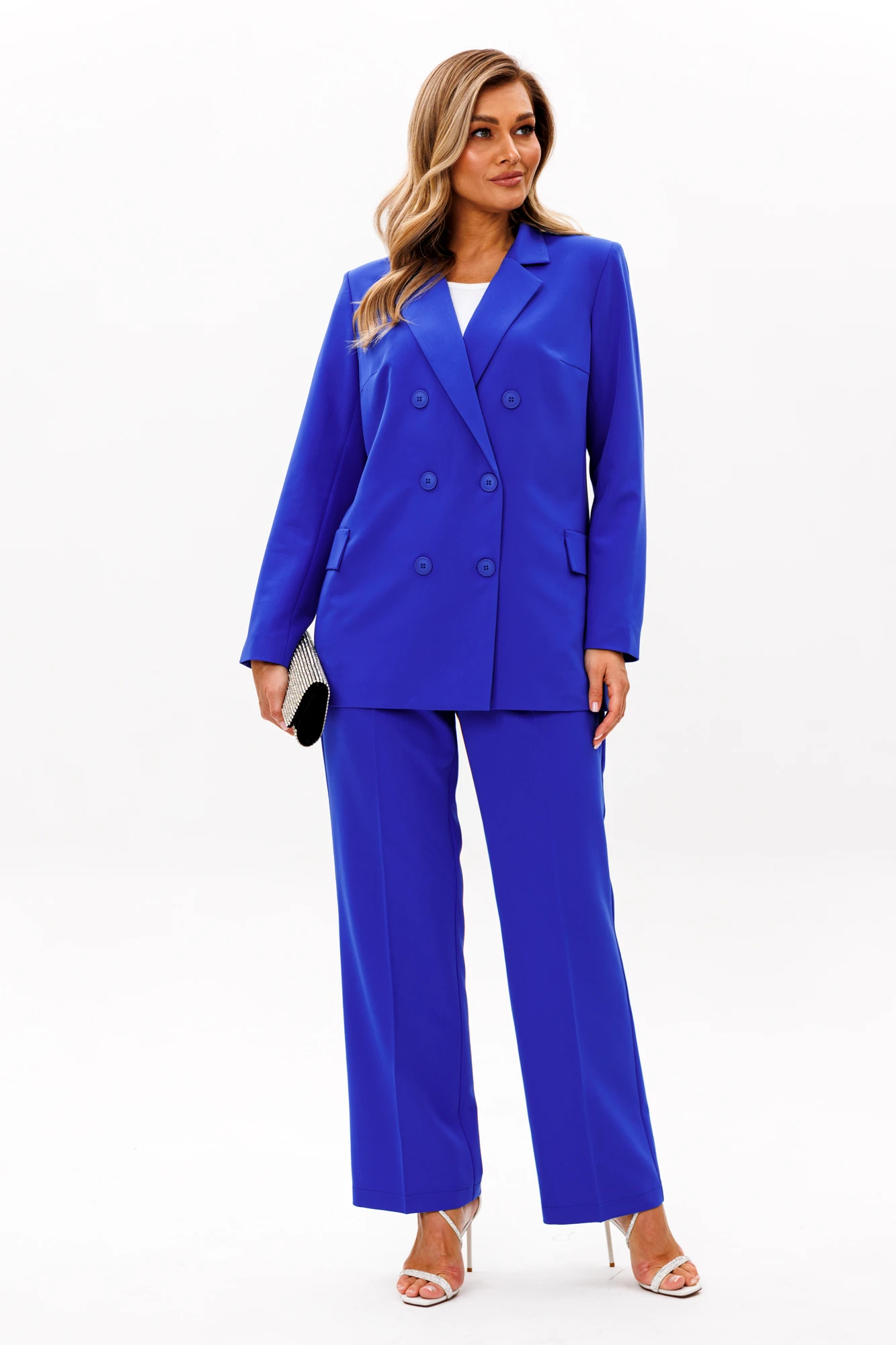 Женский брючный костюм — это идеальное сочетание стиля, комфорта и универсальности, которое станет вашим верным спутником как на деловых встречах, так и на торжественных мероприятиях. Изготовленный из высококачественной ткани, этот костюм обеспечивает легкость и приятные ощущения при носке, а его элегантный пиджак и классические брюки, подчеркивают вашу женственность и утонченность. Строгий и модный фасон делает его актуальным в любой ситуации, будь то офис, свадьба или выпускной вечер. Костюм изготовлен на подкладке с модным принтом, что добавляет шарма к вашему образу. Выбирая этот костюм, вы выбираете уверенность в себе и безупречный стиль, который никогда не выйдет из моды. Позвольте себе быть великолепной в каждой детали! Брючный костюм женский — это не просто одежда, а воплощение элегантности и стиля, которое идеально подходит для современной женщины. Костюм брючный женский деловой станет вашим незаменимым спутником в офисе, подчеркивая вашу профессиональность и уверенность. Женские брючные костюмы классические всегда остаются в моде, благодаря своему универсальному дизайну и высокому качеству материалов. Женские брючные костюмы с пиджаком создают гармоничный и завершенный образ, который подходит как для деловых встреч, так и для вечерних мероприятий. Костюм с брюками осенний женский обеспечит вам комфорт и легкость в осенние дни. Этот костюм станет вашим любимым выбором для любого сезона, будь то весна, лето или осень. Выбирая женский брючный костюм от Anastasia, вы выбираете стиль, комфорт и уверенность в себе. Костюм женский 2-х предметный: жакет на подкладке и брюки. Жакет полуприлегающего силуэта: бочок с выточкой по полочке, по спинке средний шов. Застежка двубортная, карман клапан "обманка". Рукав вточной двухшовный. Брюки прямые со стрелками. Застежка по передней части на молнию. Пояс отрезной, по бокам вставлена резинка.