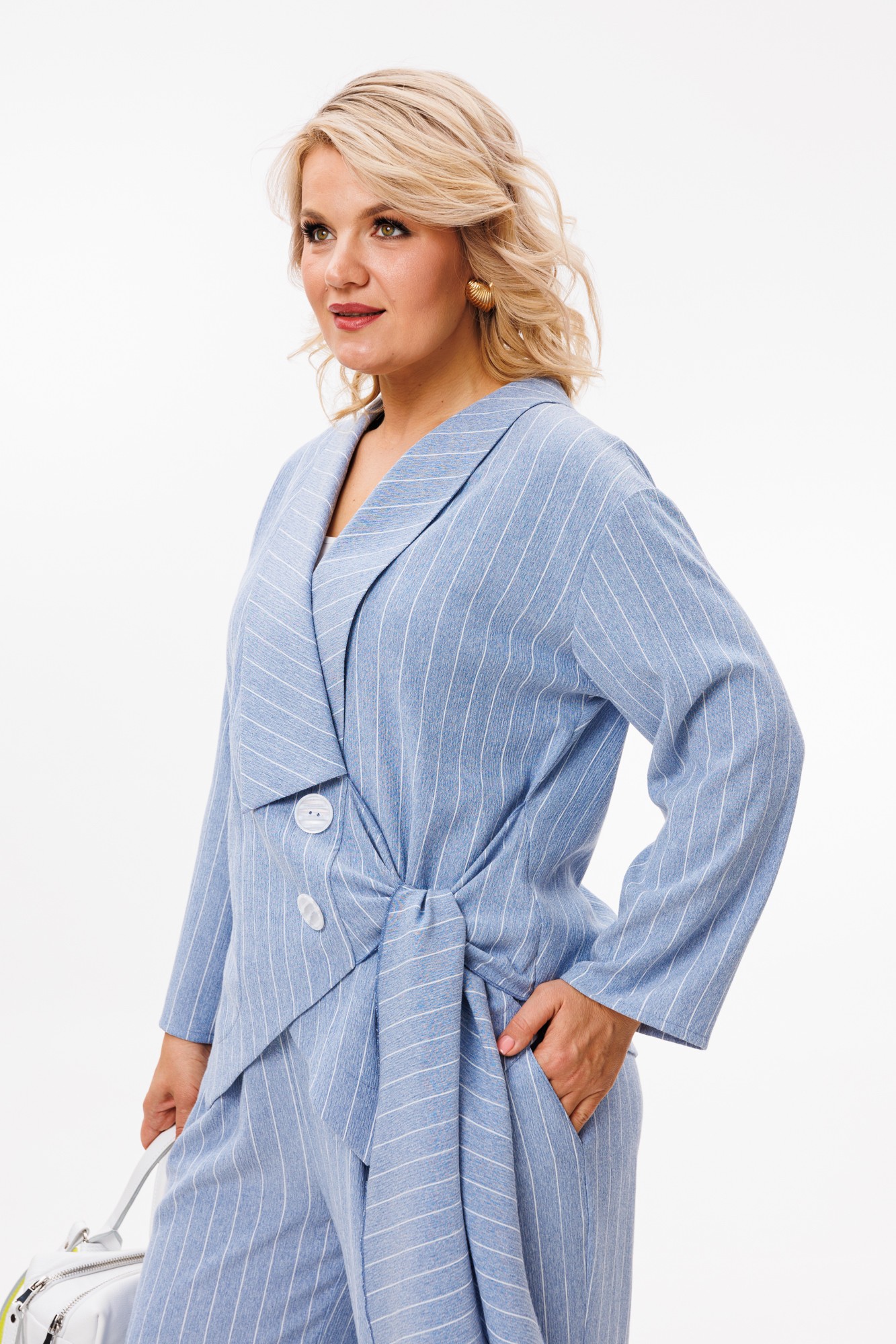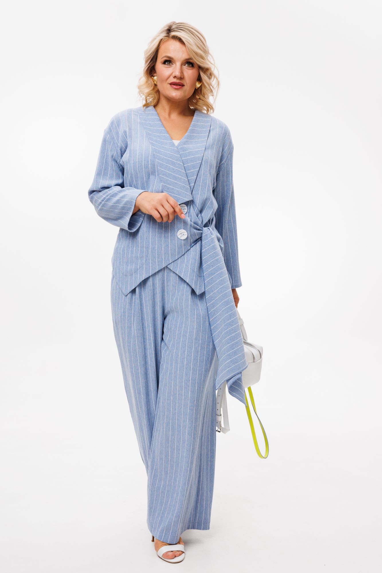 Брючный костюм Anastasia м-1206 .1 голубой меланж, принт полоска с ID товара 423604