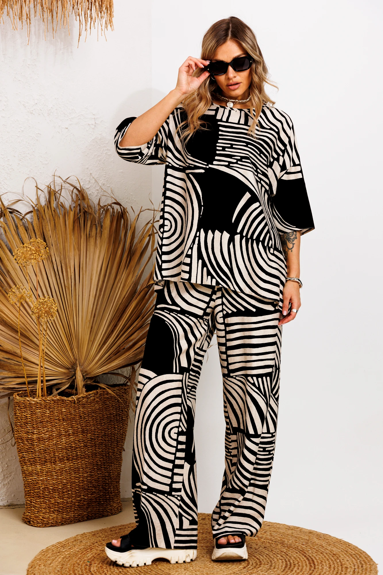 Брючный костюм Anastasia м-1245 бежево-черный