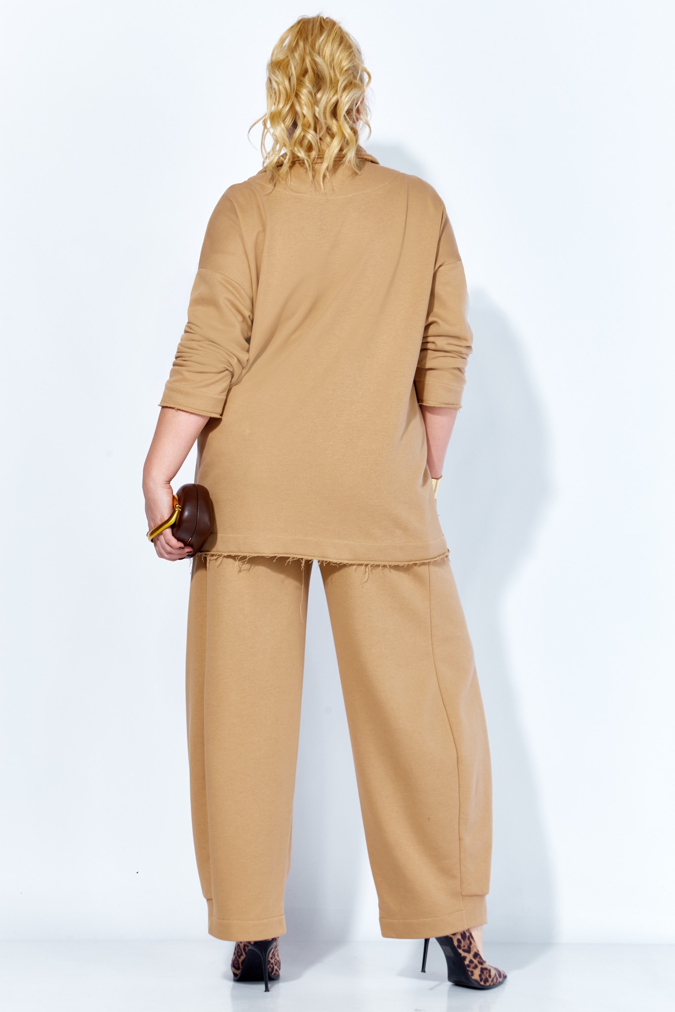 Костюм женский кэжуал (casual) из трикотажного материала трехнитка свободного кроя, который создает расслабленный силуэт -это отличный выбор для активных и стильных девушек и женщин, которые ценят моду и комфорт! Жакет со спущенным плечом. Воротник пиджачного типа, по полочке идут накладные карманы. Жакет без подкладки, мягкий и легкий. Края борта воротника, низов и карманов не обработаны. Застежка на петли и пуговицы. Выполнен в крое Oversize свободной формы и посадкой по фигуре. Если хотите силуэтную посадку, выбирайте на размер меньше. Если хотите посадку свободнее - заказывайте свой размер. Стильный и трендовый жакет подойдет для высоких и невысоких женщин. Брюки в корейском стиле со вставками по бокам (по низу довяз). В передней части по бокам карманы. По спинке кокетка , переходящая в карманы. Пояс на резинке. Подходит на любой тип фигуры - свободный крой и размерный ряд.Ткань не мнется — удобно в дороге: в самолете, поезде или автомобиле. Носите как комплект или отдельно - легко вписывается в гардероб.