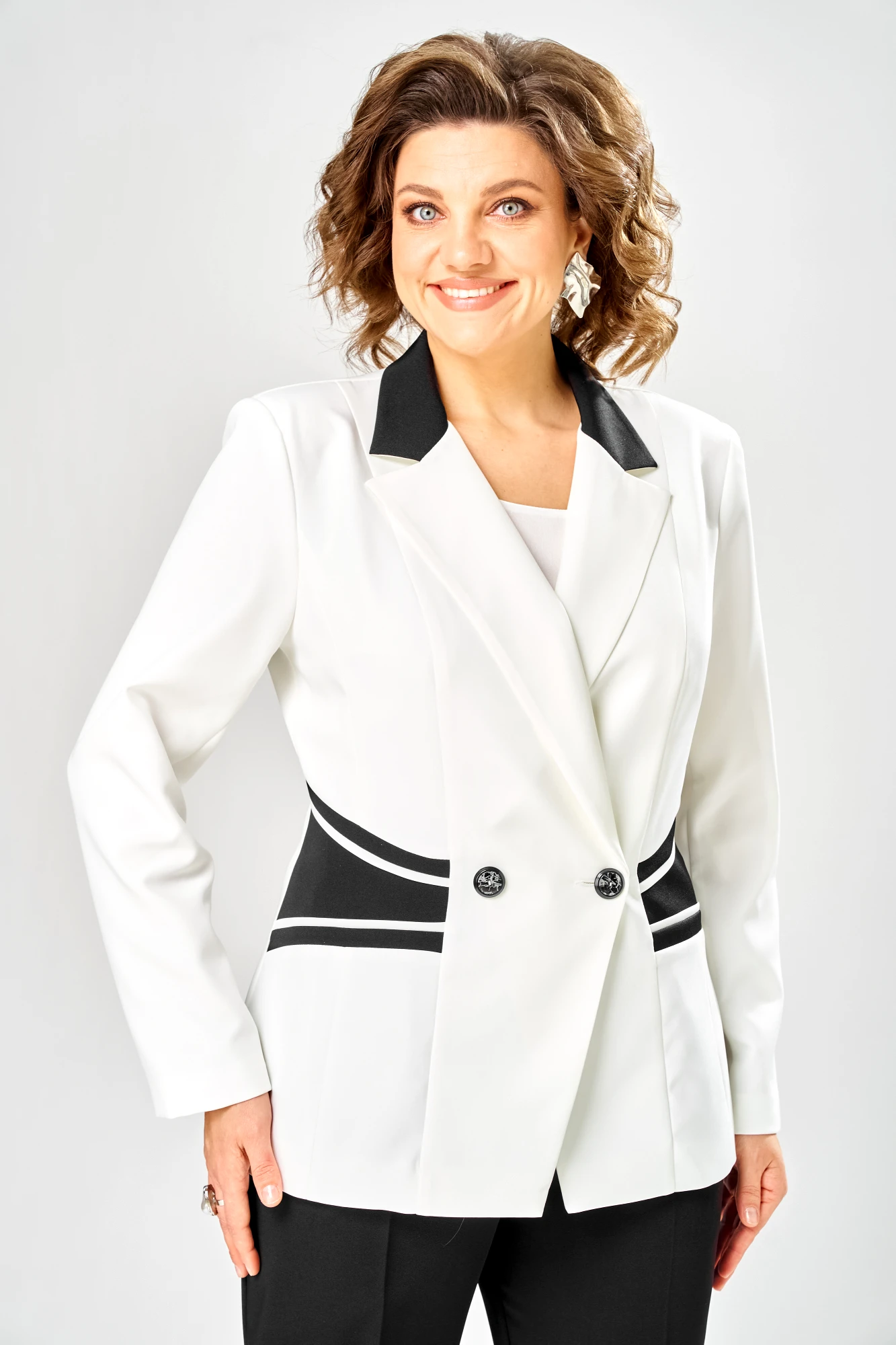 Брючный костюм Anastasia Mak 1315 черный, молочный