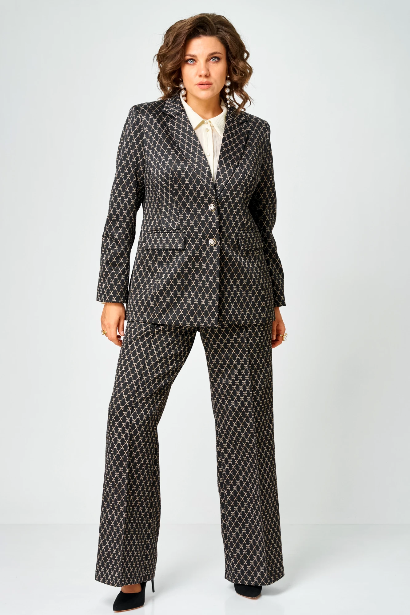 Брючный костюм ANDINA CITY 9085 двойка чёрный с бежевым