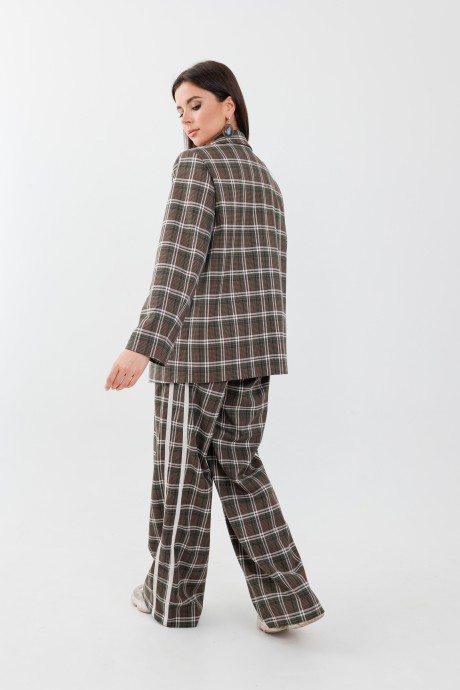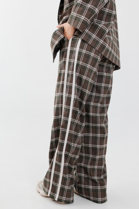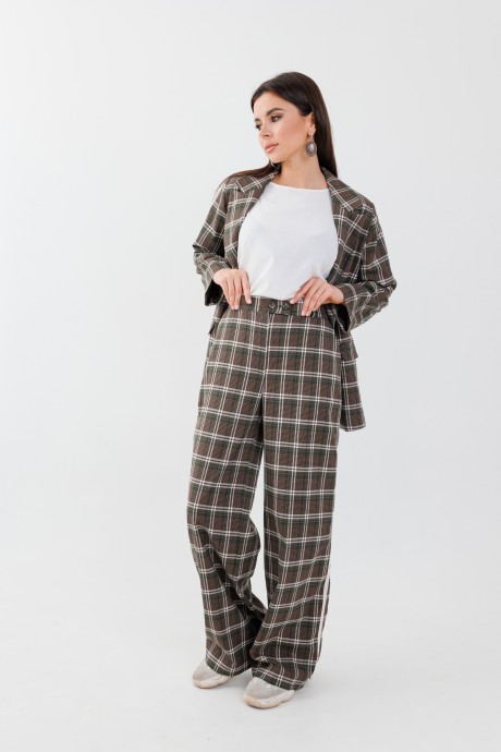 Брючный костюм Anelli 1297 двойка коричневый, клетка