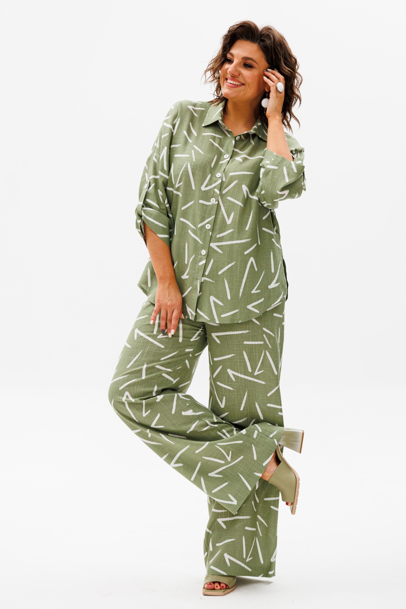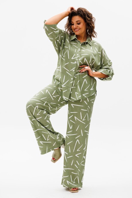 Брючный костюм Anelli 1406 двойка зеленый чай