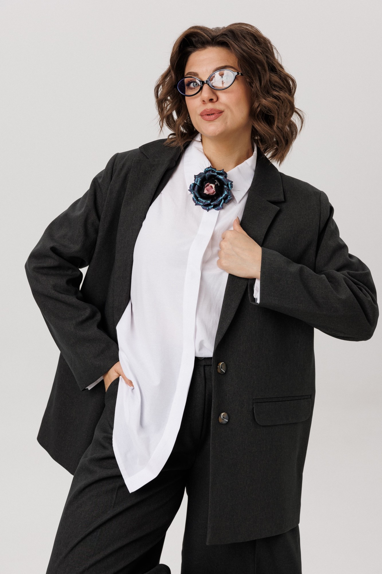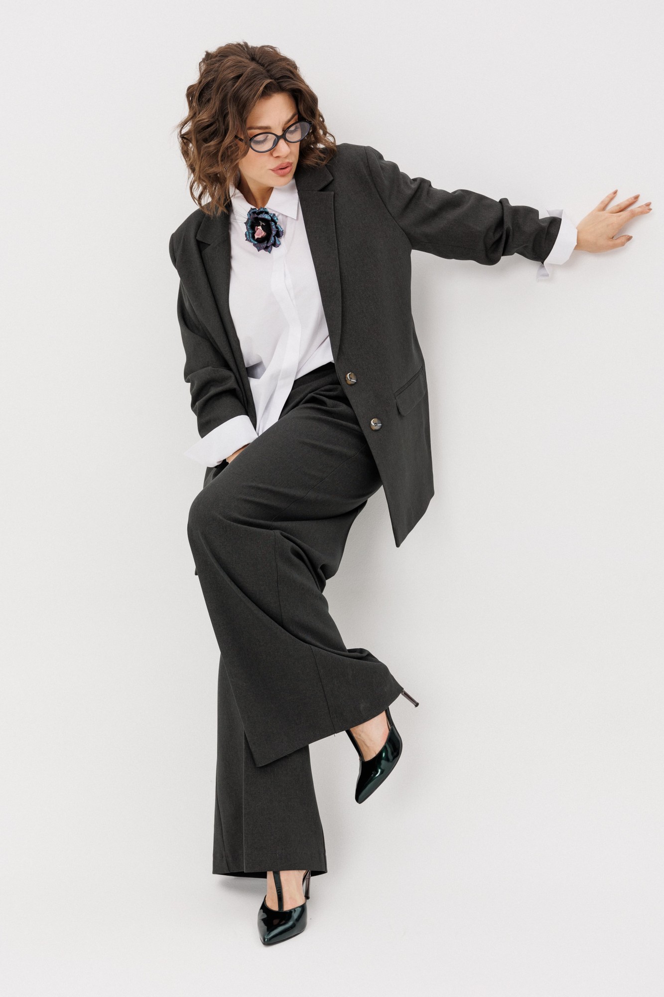Женский костюм свободного кроя в цвете "классика обсидиана" является настоящей классикой стиля и обладает притяжением взглядов.