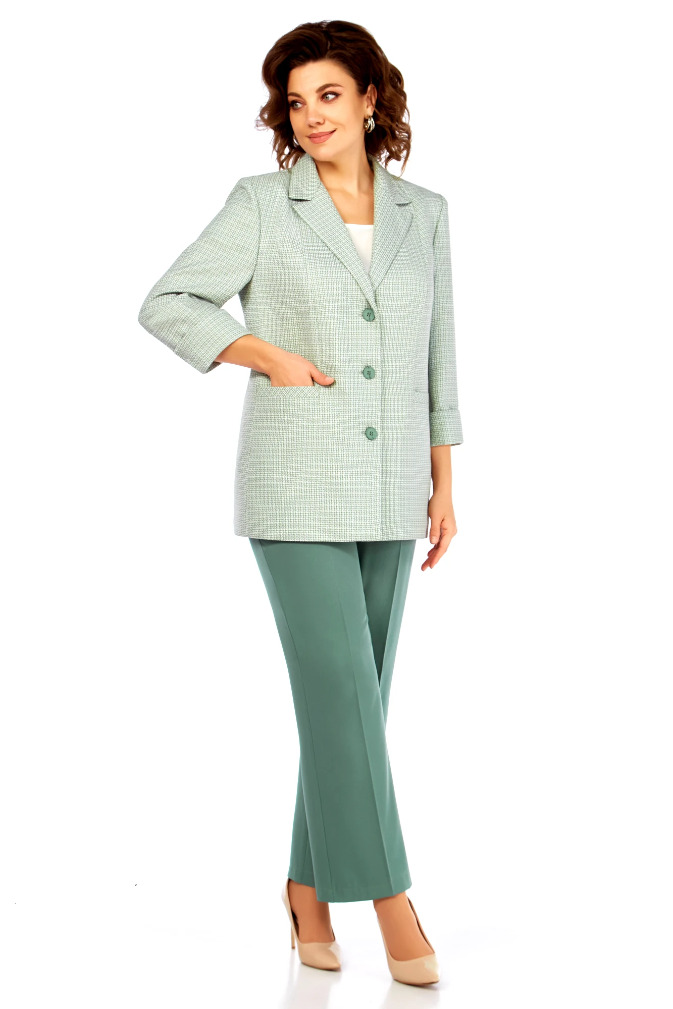 Брючный костюм Bagira 1018 тройка зеленый