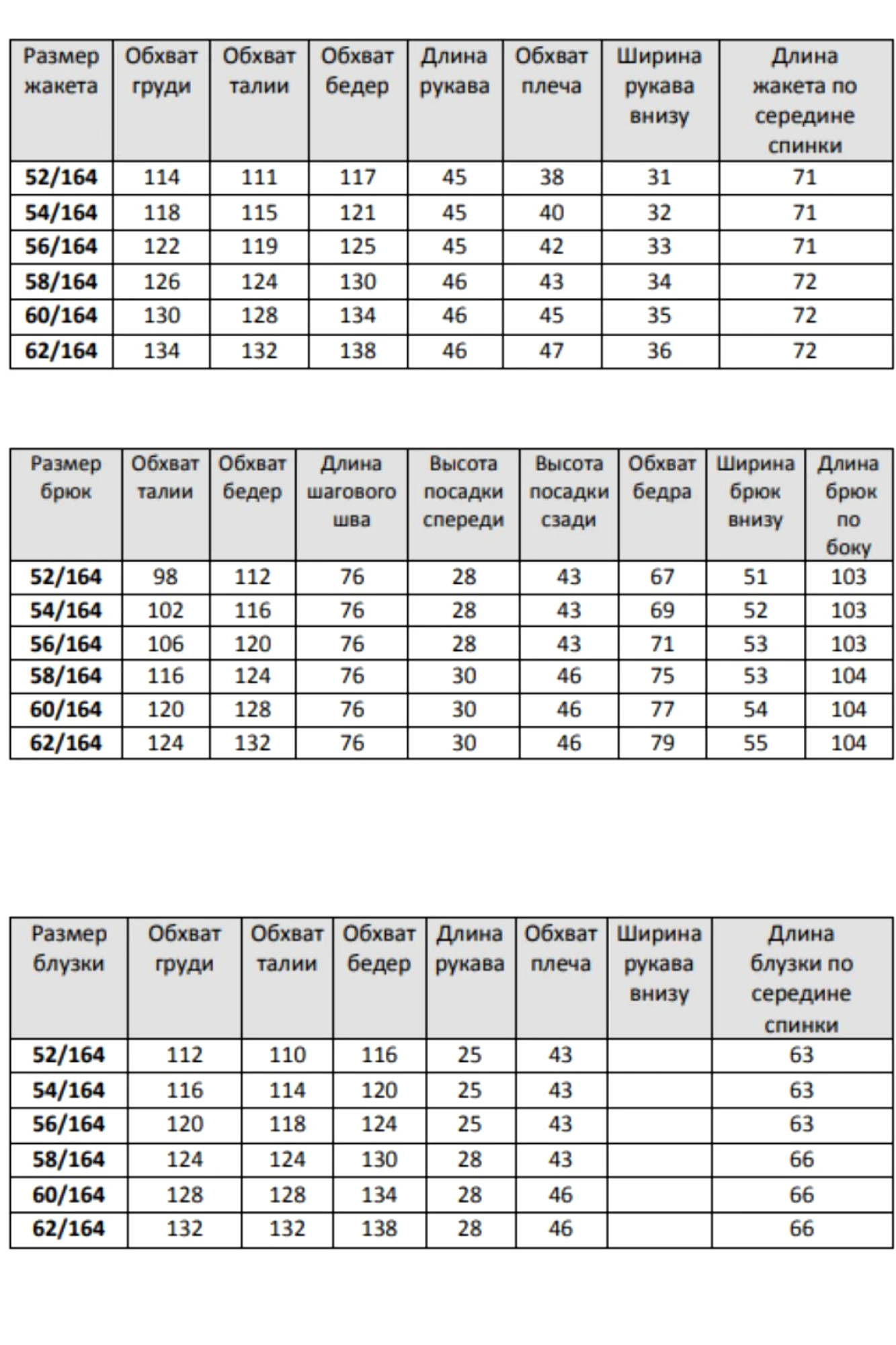 вискоза 70% полиэстер 25% спандекс 5%( жакет) вискоза 65%полиэстер 30% лайкра 5%(брюки) полиэстер 98% спандекс 2%(блуза)