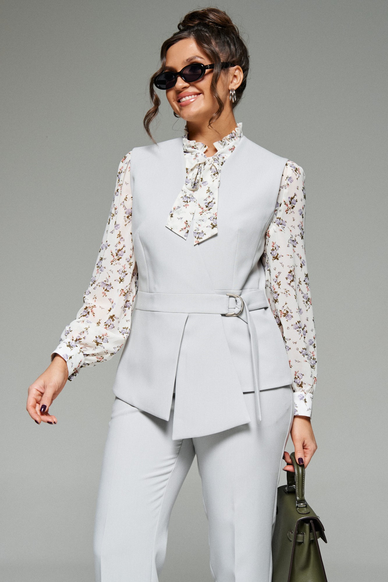 Брючный костюм Beautiful&Free 6264 тройка светло-серый с ID товара 415646