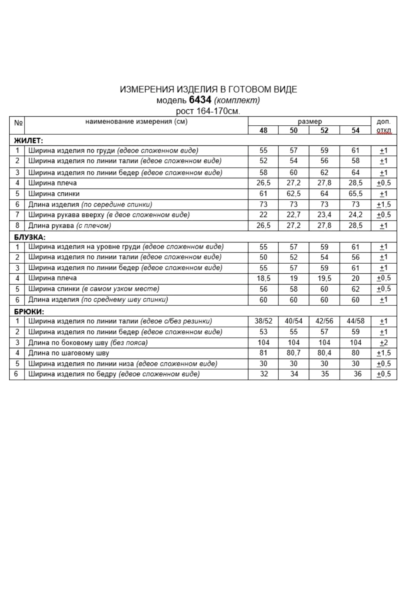 брюки, жилет – вискоза 64%, пэ 33%, спандекс 3%; блузка – пэ 68%, вискоза 27%, спандекс 5%