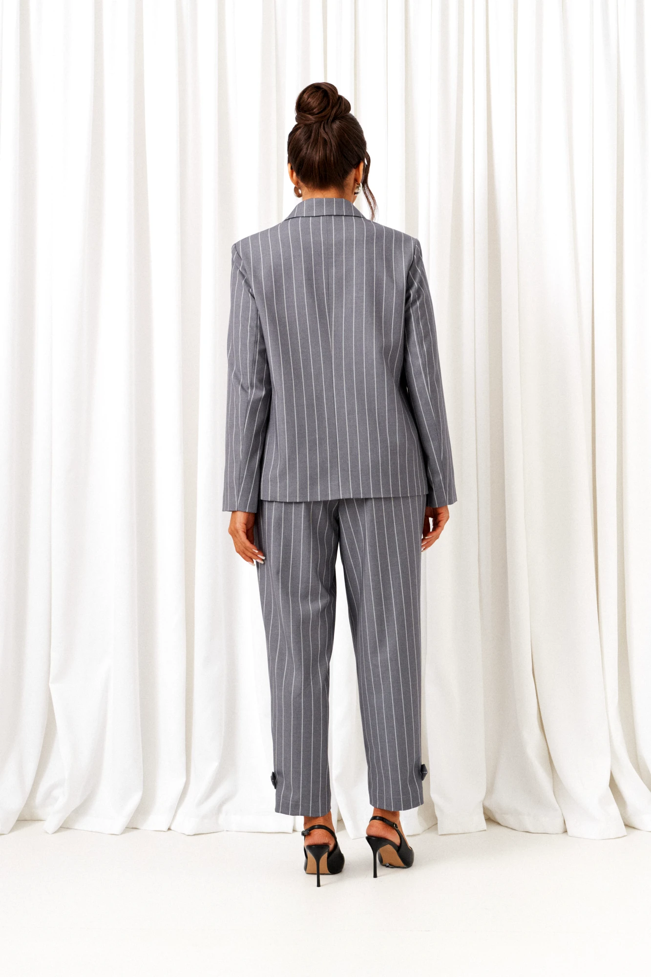 Брючный костюм Beautiful&Free 6435 двойка светло-серый, полоска