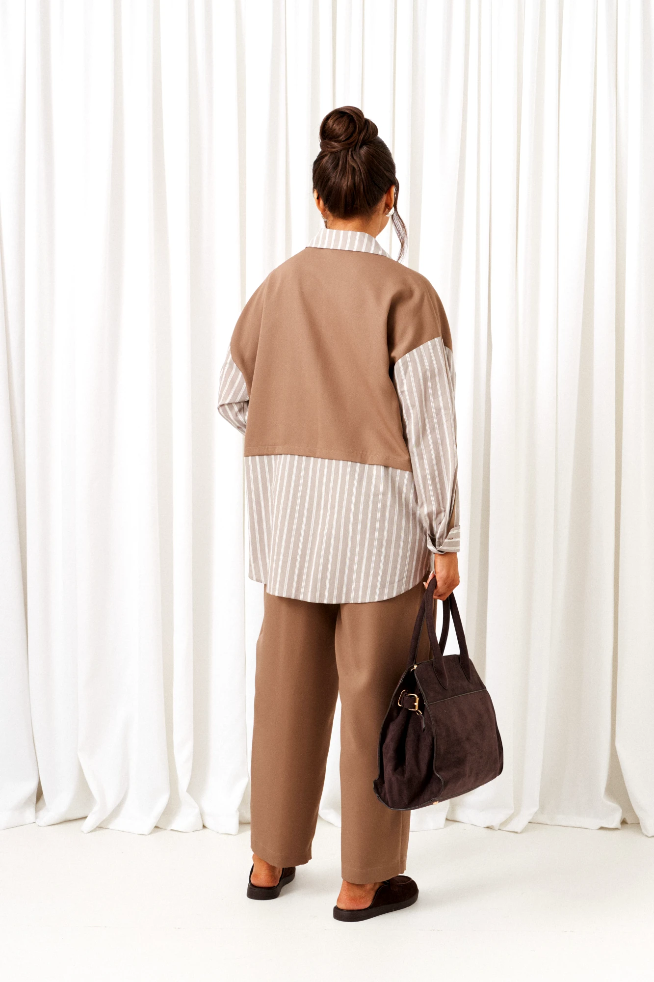 Брючный костюм Beautiful&Free 6438 двойка какао, полоска